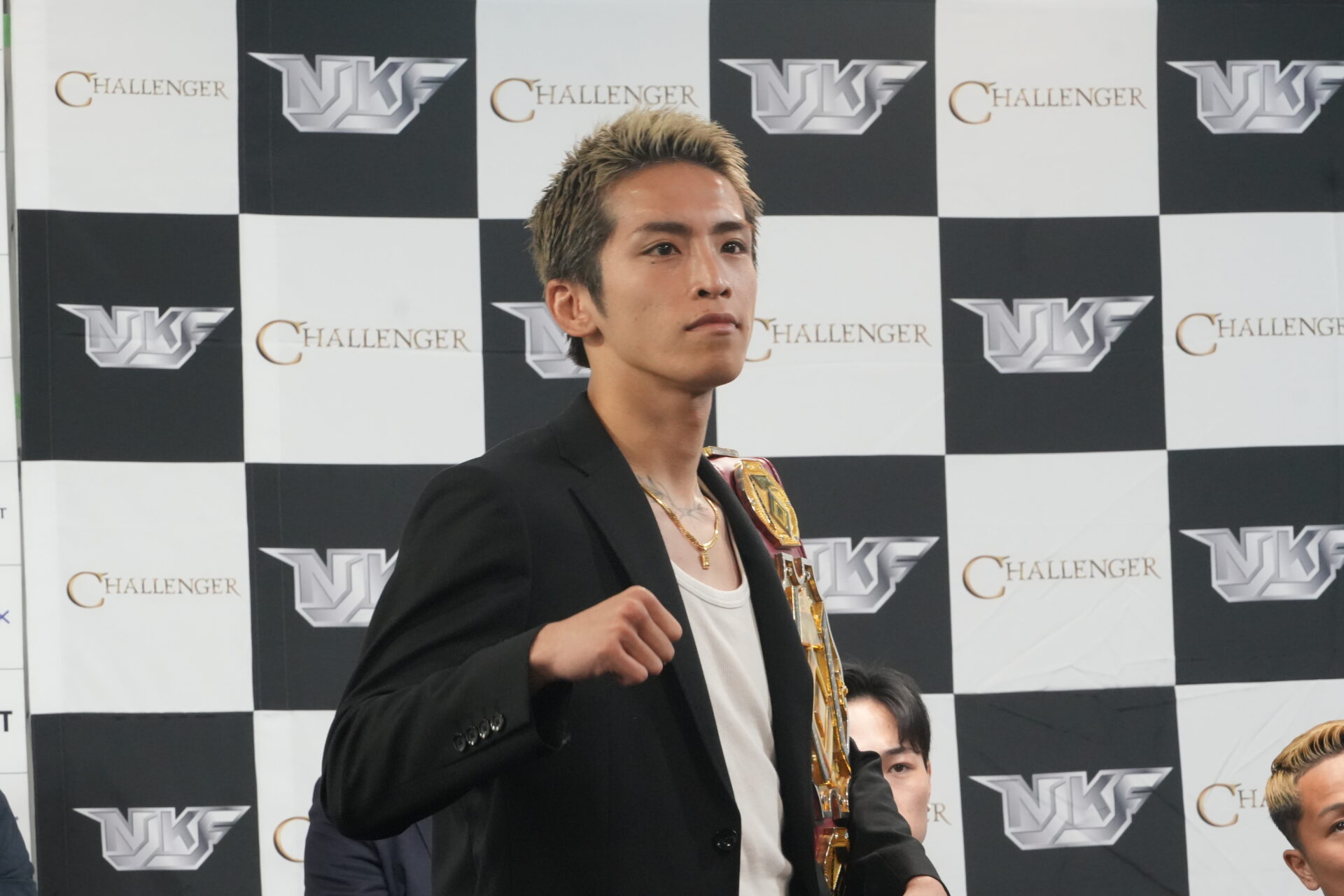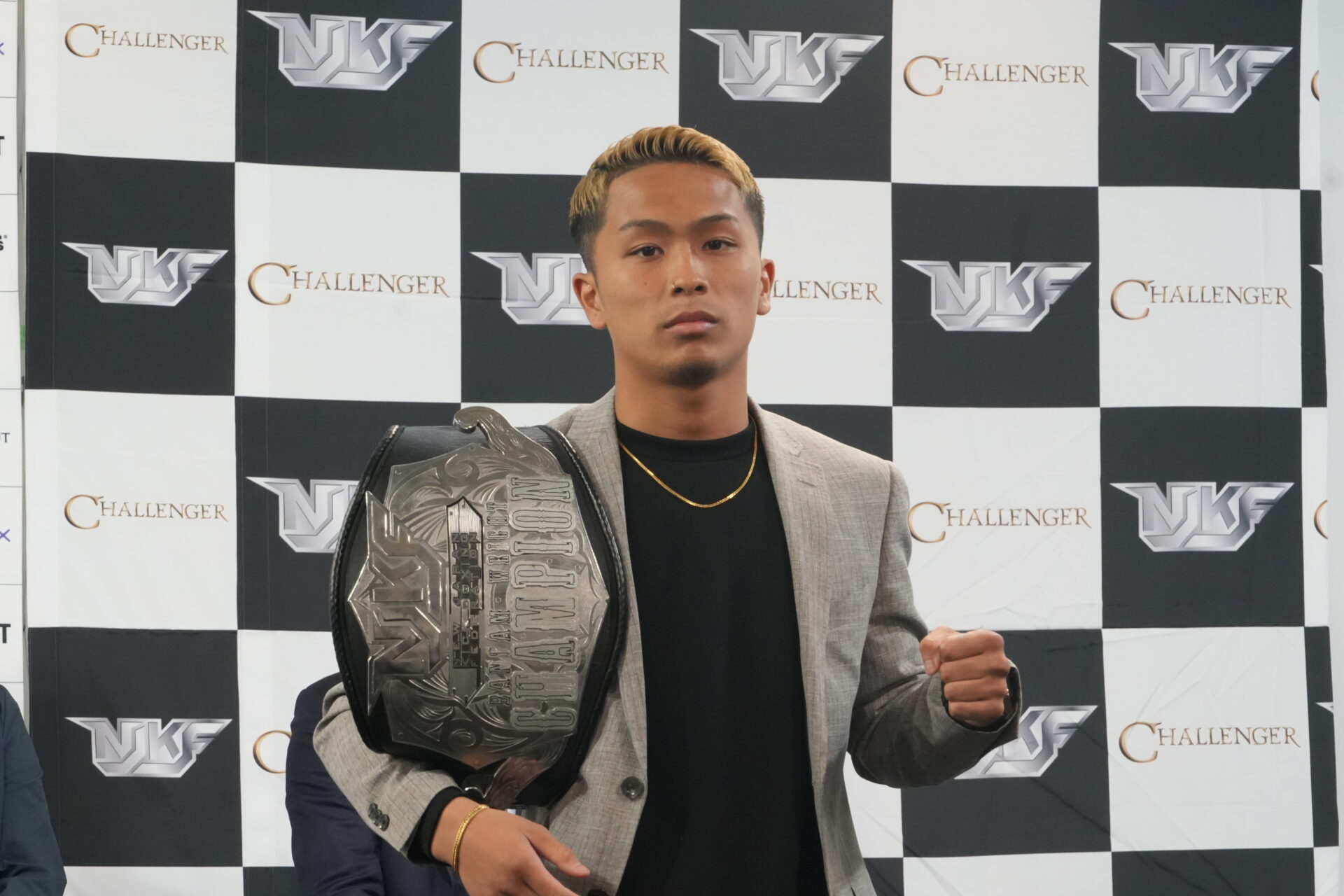 KNOCK OUT代表として出場する壱は「vs.他団体、vs.世界を掲げて、世界の方ではONEに挑戦させてもらったり、チョークディー選手と試合をさせてもらって、他団体の方でも舞台を用意してもらってありがとうございます」とあいさつ。