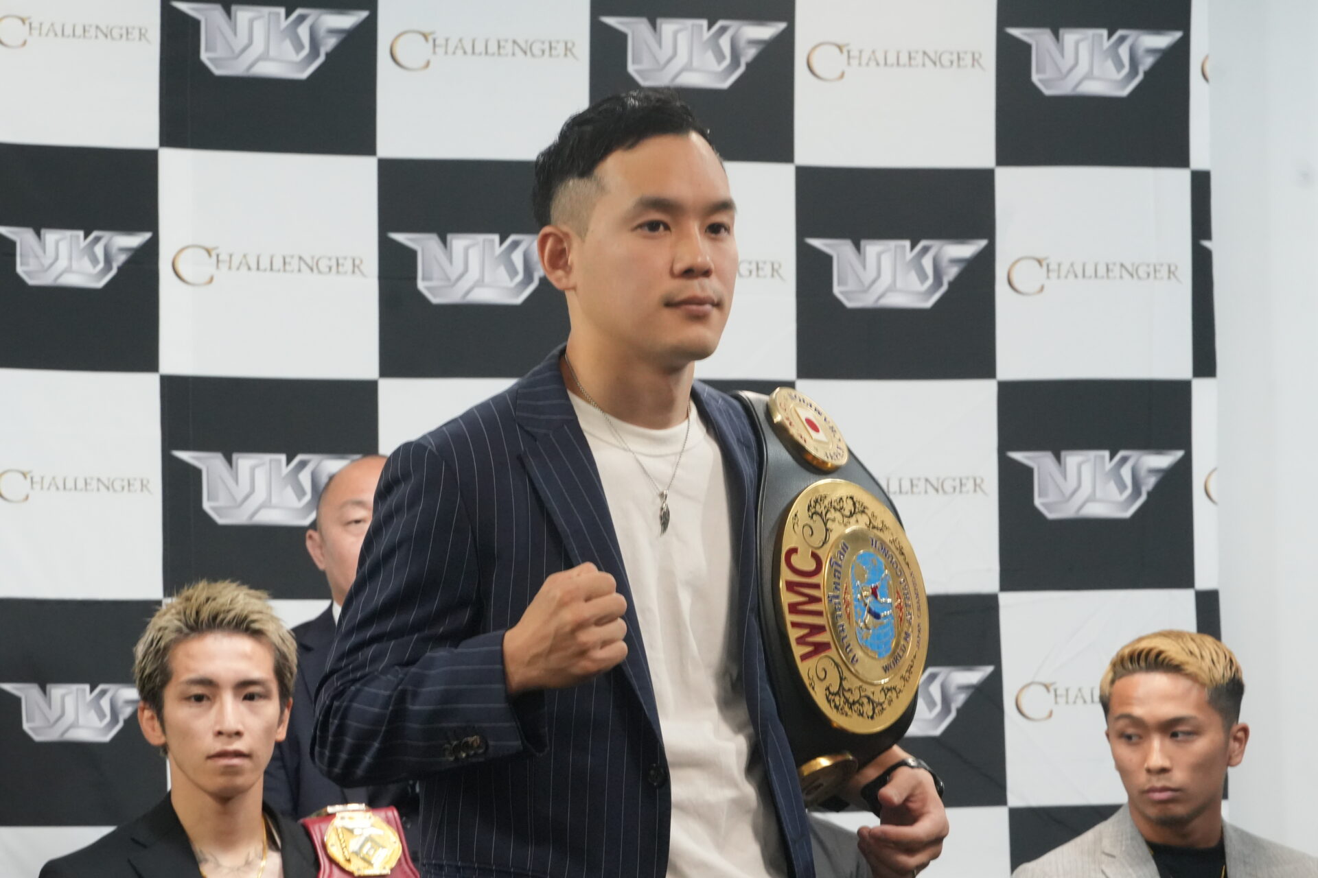 ■佐野佑馬(創心會/WMC日本スーパーバンタム級王者) 「素晴らしい大会に呼んでいただきありがとうございます。精一杯頑張るのでよろしくお願いします。 (誰と戦いたいか)僕はよく分からなくて、誰とやってもアツい試合をしたいと思っているので誰でもかかってこいという感じです。 (誰にも負けない点は?)僕は左ミドルをめっちゃ蹴る選手なので、キックボクサーなので蹴りまくってみんなを倒したい。 (自分の団体、持っているベルトに対する誇りについて)BOMが一番ムエタイは強いと思っているので、ムエタイの技術を全部見せられるように僕が頑張っていきたいと思います。 (ヒジあり、首相撲からの攻撃無制限というこの純キックボクシングルールで何を見せたいか)ヒジありはいろいろな技術があって、そういう技術面も分かる人は分かるので、そういう面では面白いと思います。ヒジありの方が僕は好きですね」