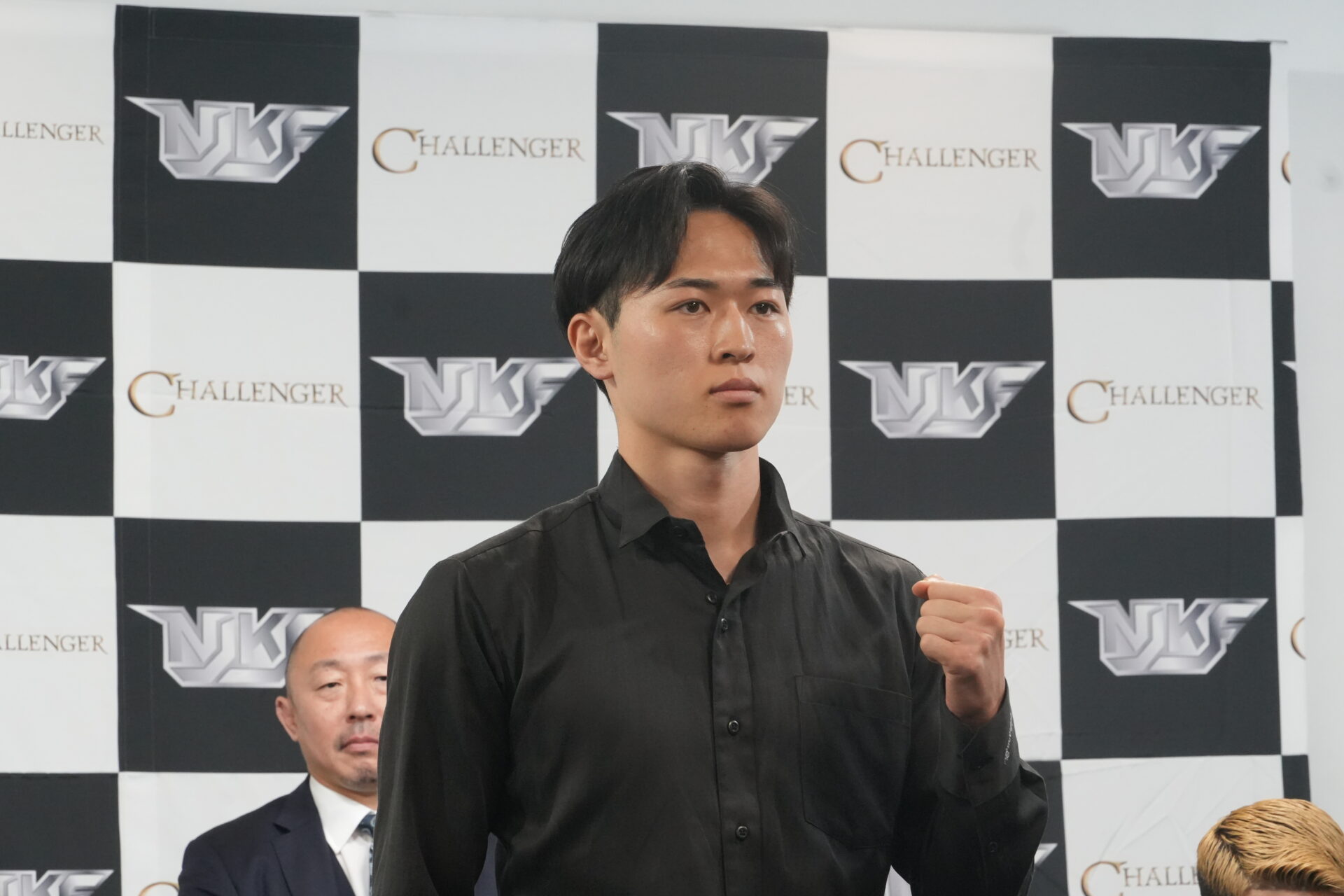 ■嵐(キングジム/NJKFバンタム級王者) 「みんな弱そうなので、俺が一番かなって思っています。特にコイツ(=壱)をぶっ飛ばすので、俺は。 (壱と対戦したい理由)顔がキモイ、以上。 (誰にも負けない点は?)気持ちですかね。 (自分の団体、持っているベルトに対する誇りについて)NJKFはKNOCK OUTより知名度はないので、俺がここで全部喰ってNJKFを一気にドカンと世間に知らしめようかと思います。 (ヒジあり、首相撲からの攻撃無制限というこの純キックボクシングルールで何を見せたいか)ヒジありでも無しでも俺の試合は何でも面白いので、それを見てくれれば」