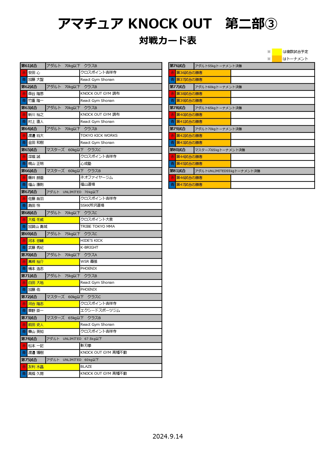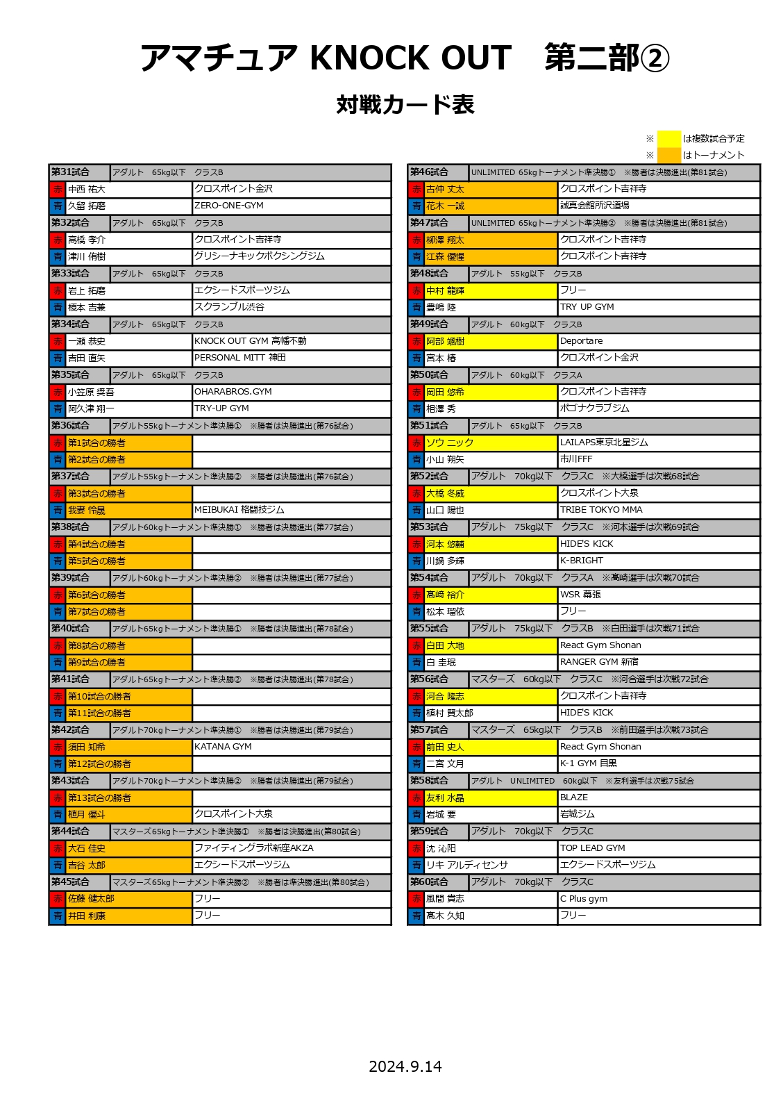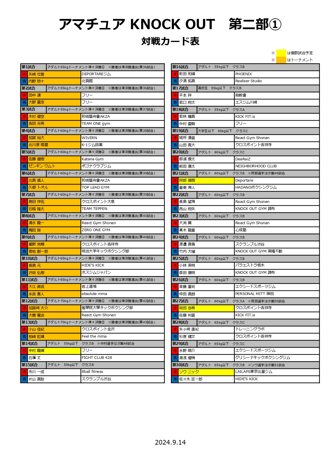 2024年9月14日(土)に新宿FACEで行われます「KNOCK OUTアマチュア」の対戦カードが決定いたしましたので、お知らせいたします。