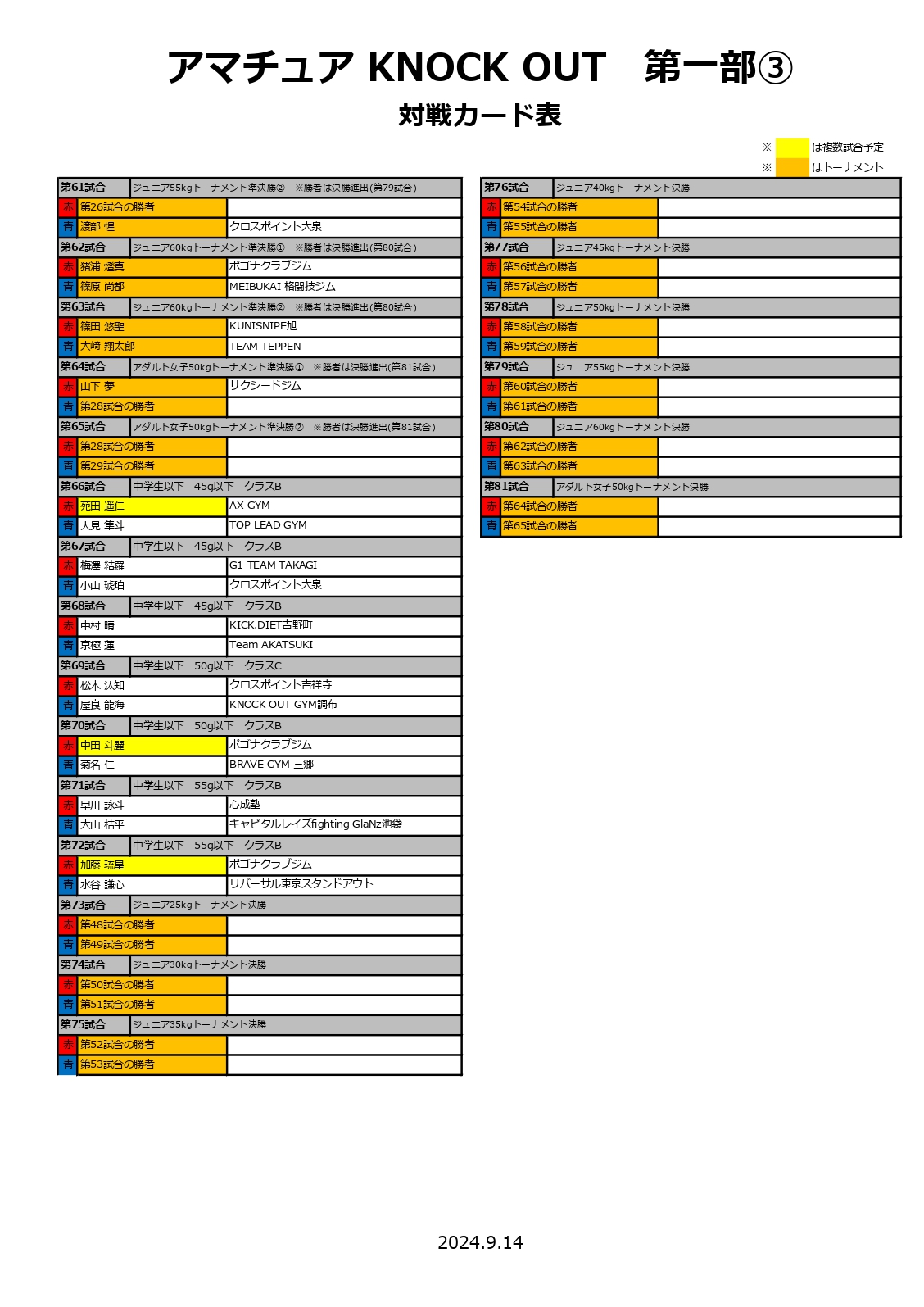 ▶選手・セコンドの皆様は、試合が終わりましたら順次ご帰宅ください。