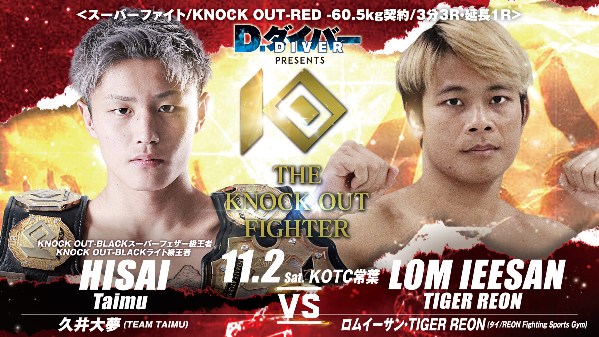 施設のこけら落とし大会として、11月2日(土)にライブ配信大会となる『D.ダイバー presents THE KNOCK OUT FIGHTER』が開催され、鈴木千裕と渡慶次幸平のチームKNOCK OUTvs大沢ケンジ率いる最強MMA連合軍の対抗戦が行われるほか、スーパーファイトとしてKNOCK OUT-BLACKスーパーフェザー級&ライト級王者・久井大夢(TEAM TAIMU)vsロムイーサン・TIGER REON(タイ/REON Fighting Sports Gym)の一戦(KNOCK OUT-REDルール/-60.5kg契約/3分3R延長1R)も決定した。