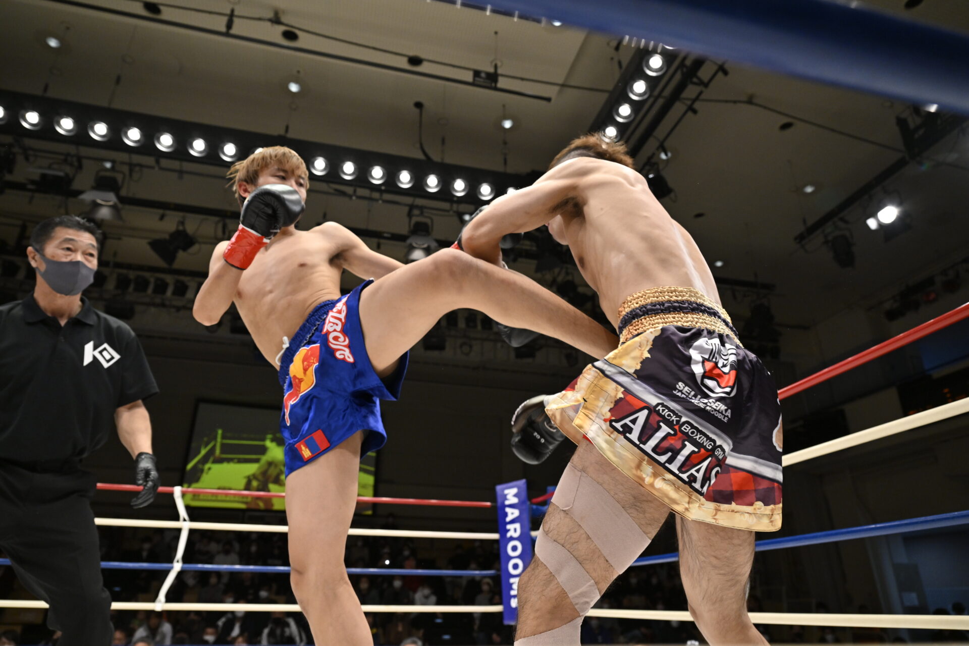 富田 一番は、テクニックが向上したかなと思ってます。大学でまたやり始めた時はスパーリングとかもしてなくて、「これまでの経験と勢いでいけるでしょ」みたいな軽い考えだったんですけど、それがデビュー戦で見事に崩れ落ちて。首相撲をすごく狙われていたので、首相撲を練習したり、パンチをもらわないように距離を取って自分がカウンターを当てるとか、そういった練習に重きを置いていたので、ディフェンス面とかが以前よりは向上したかなと考えてます。