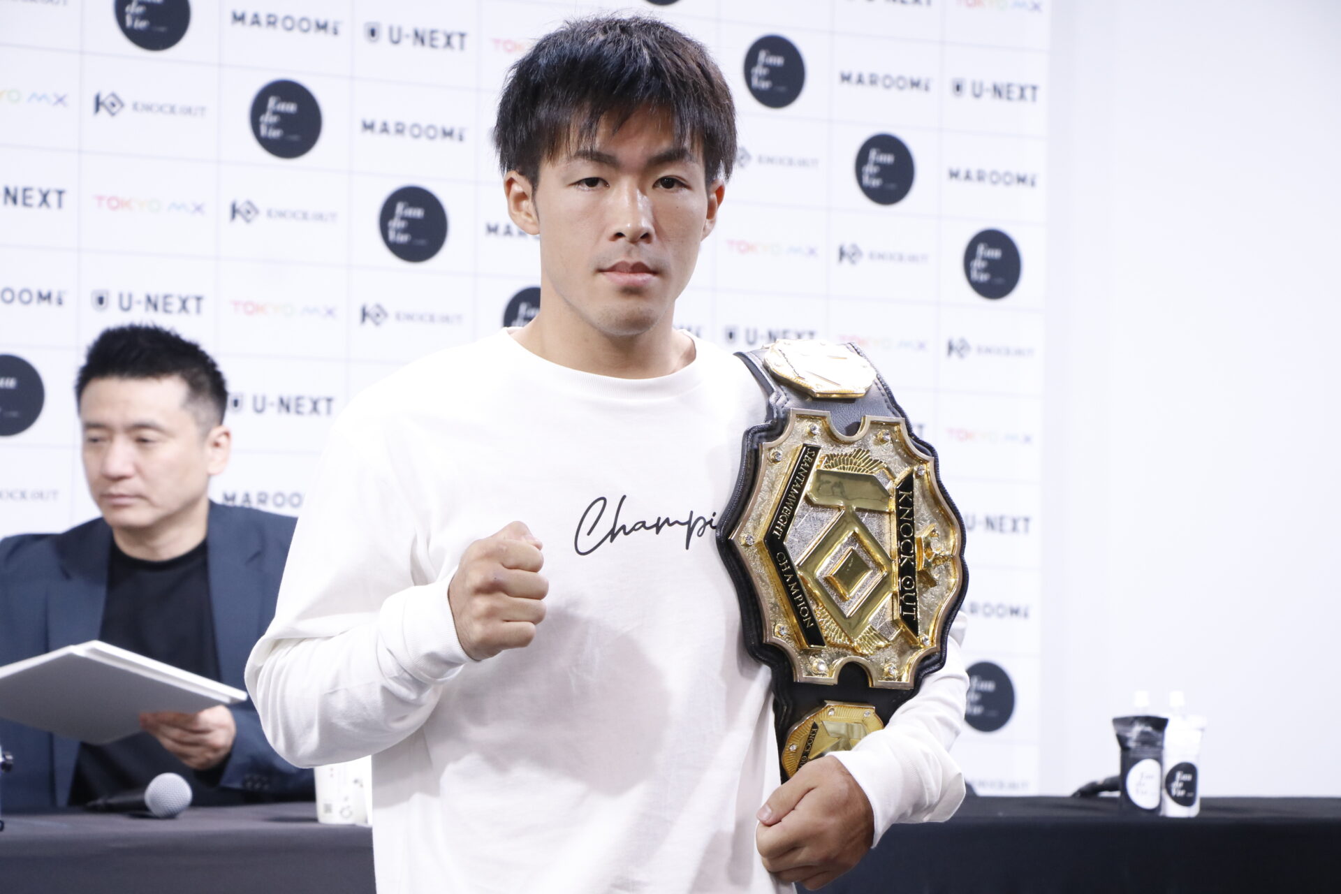 会見に同席した山口代表は「KNOCK OUTのベルトを持つということは他団体の選手に負けるわけにはいかない。(栗秋は)練習が嫌い、練習をサボるキャラではいられない立場になり、今までの祥梧は自覚がない人間だったので、ベルトを持つことで生まれ変われるきっかけになるのかなと。改めてチュームーシーフーを迎え撃った時にまた違う試合内容になるのか、そこに期待したいですね。ジャッジに関しては判定を覆すほどの差はなかったかなと。だからこそ再戦で白黒をはっきり付けるために、防衛戦はチュームーシーフーとの試合が見てみたいと思います」とした。