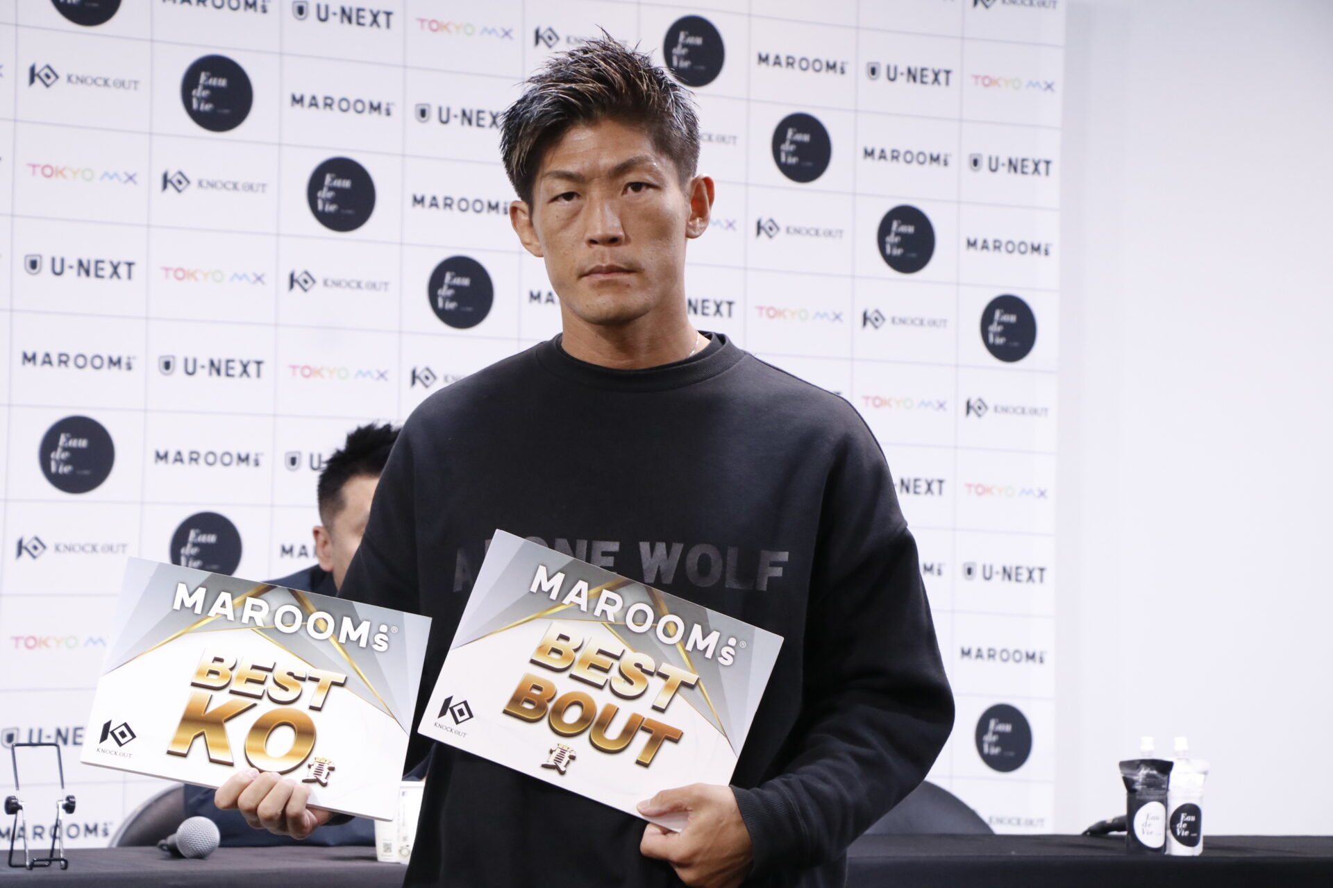 会見では、今大会に出場した選手を対象とした【MAROOMS賞(三賞)】が発表され、MAROOMS BEST FIGHTER賞は中島玲(フリー)が選ばれ賞金10万円、MAROOMS BEST KO賞は渡部太基(TEAM TEPPEN)が選ばれ賞金10万円が贈呈。MAROOMS BEST BOUT賞は通常1試合だが、第4試合の中島玲vs漁鬼(SHINE沖縄)と渡部太基vs西川康平(8ball fitness)の2試合が選ばれ、両試合の選手にはそれぞれ5万円が贈呈。また、KNOCK OUT FCサイトでの「みんなが選ぶMVP」には中島が選ばれ、賞金10万円が贈られた。