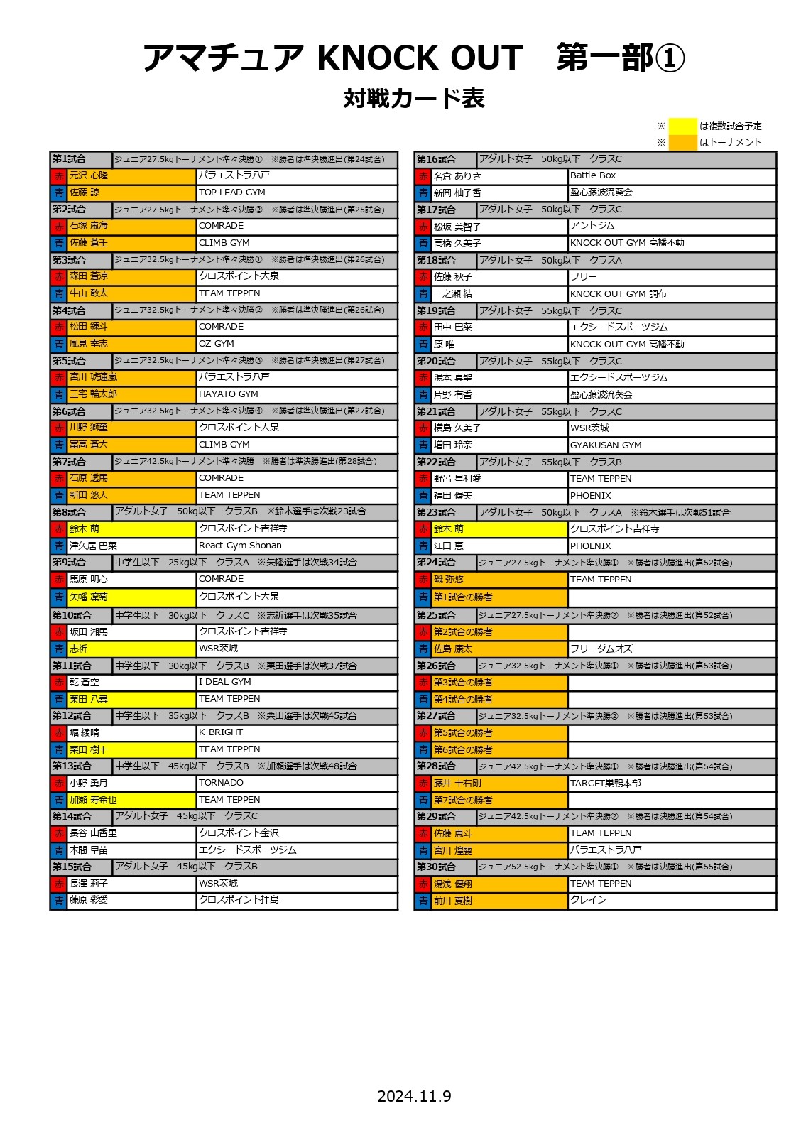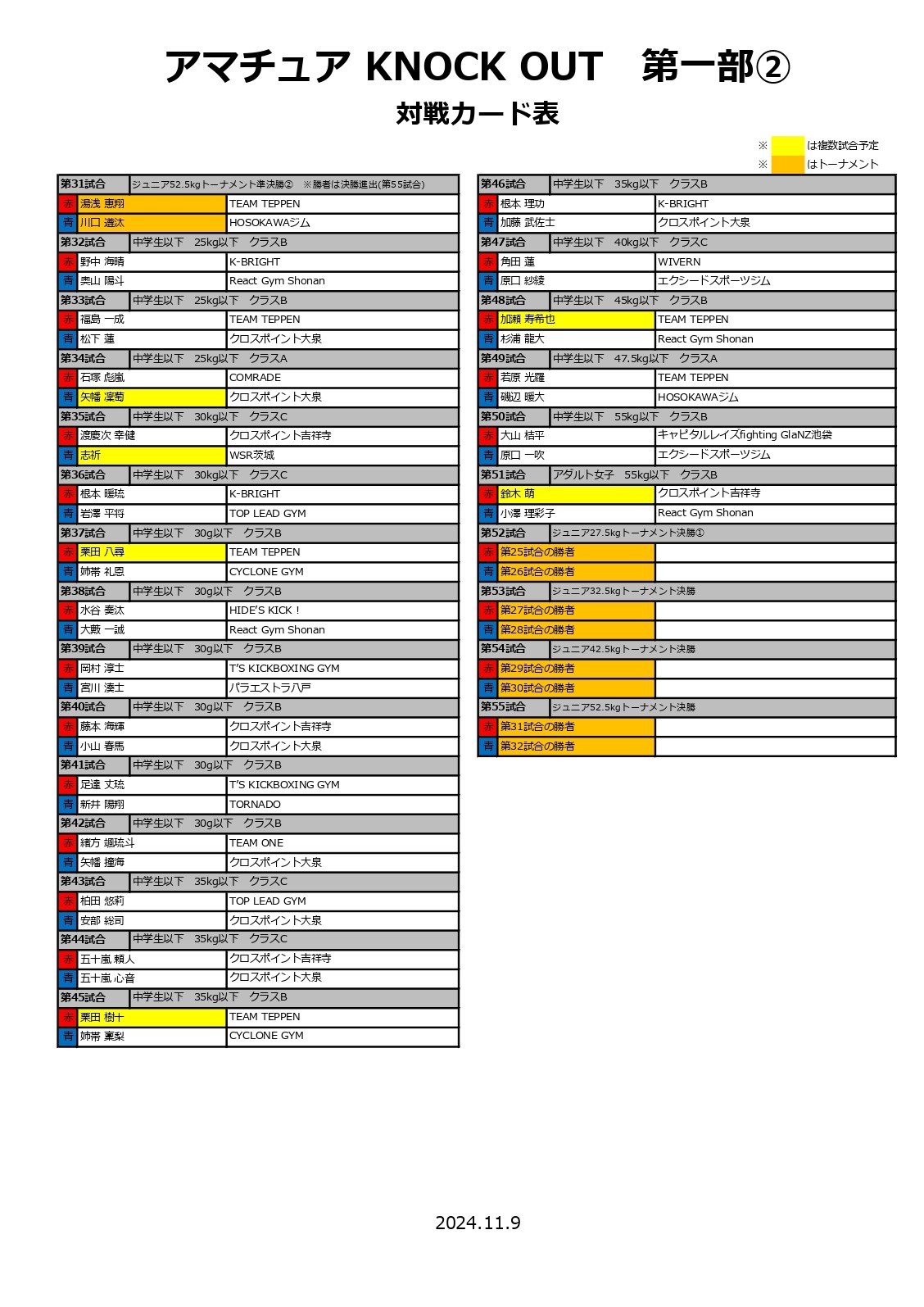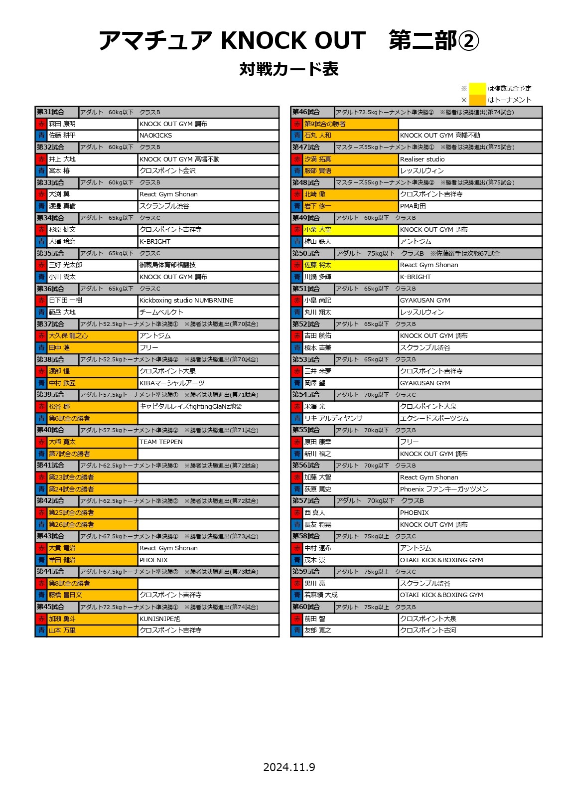 2024年11月9日(土)に新宿FACEで行われます「KNOCK OUTアマチュア」の対戦カードが決定いたしましたので、お知らせいたします。