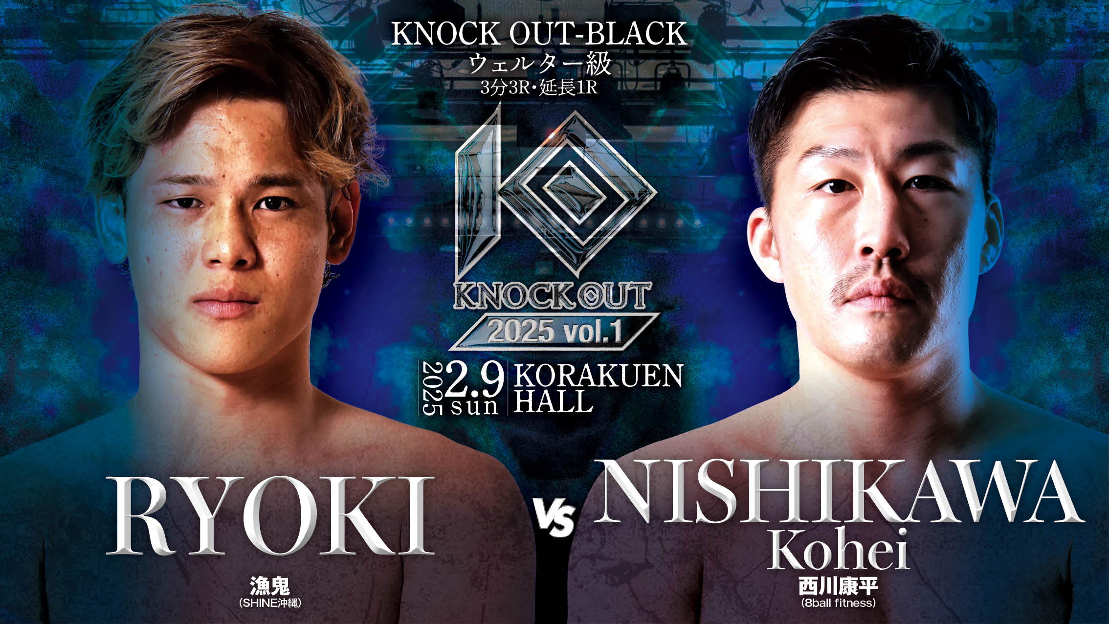 ▼KNOCK OUT-BLACKウェルター級 3分3R・延長1R 漁鬼(SHINE沖縄)vs西川康平(8ball fitness)