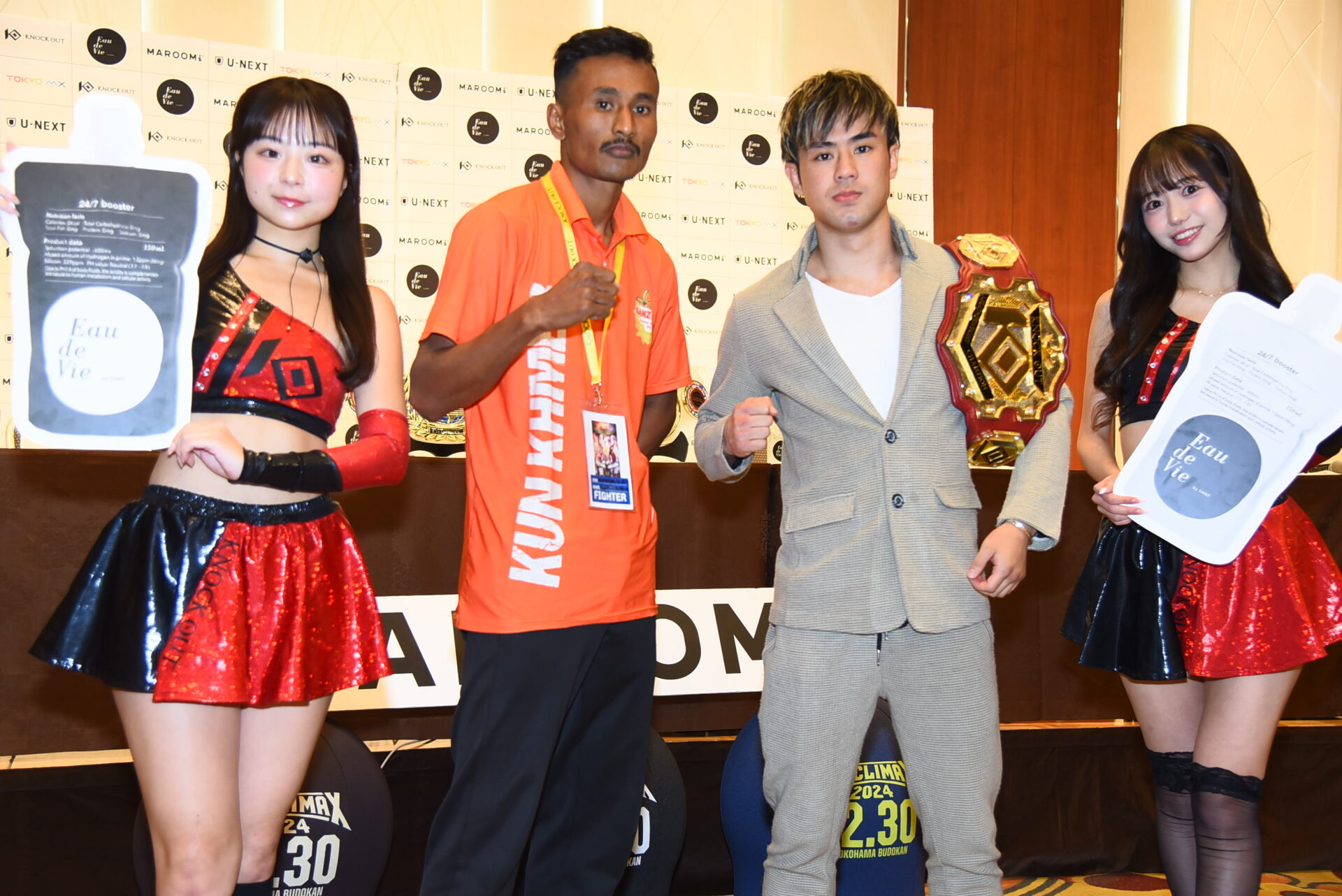 ピッチ・ソムパッツ(カンボジア)=59.60kg 「今回KNOCK OUTに2度目の出場できることを感謝しています。今回はベルトが懸かった試合なのですごくワクワクしているので明日は頑張りたいと思います。 (優勝するために重要なこと)明日勝つためにたくさん応援していただいて、明日は応援の力で勝ちたいと思います。 (前回来日した8月の試合(小森玲哉戦)から10試合やっていると聞いたが最近の試合は?)すみません、あまり覚えてないですね。 (どのくらいの間隔で試合をしているか)KOしたら1カ月に3回。KOしなかったら1カ月に2回です。 (ベルトへの思い)明日、ベルトを持ち帰りたいと思います」