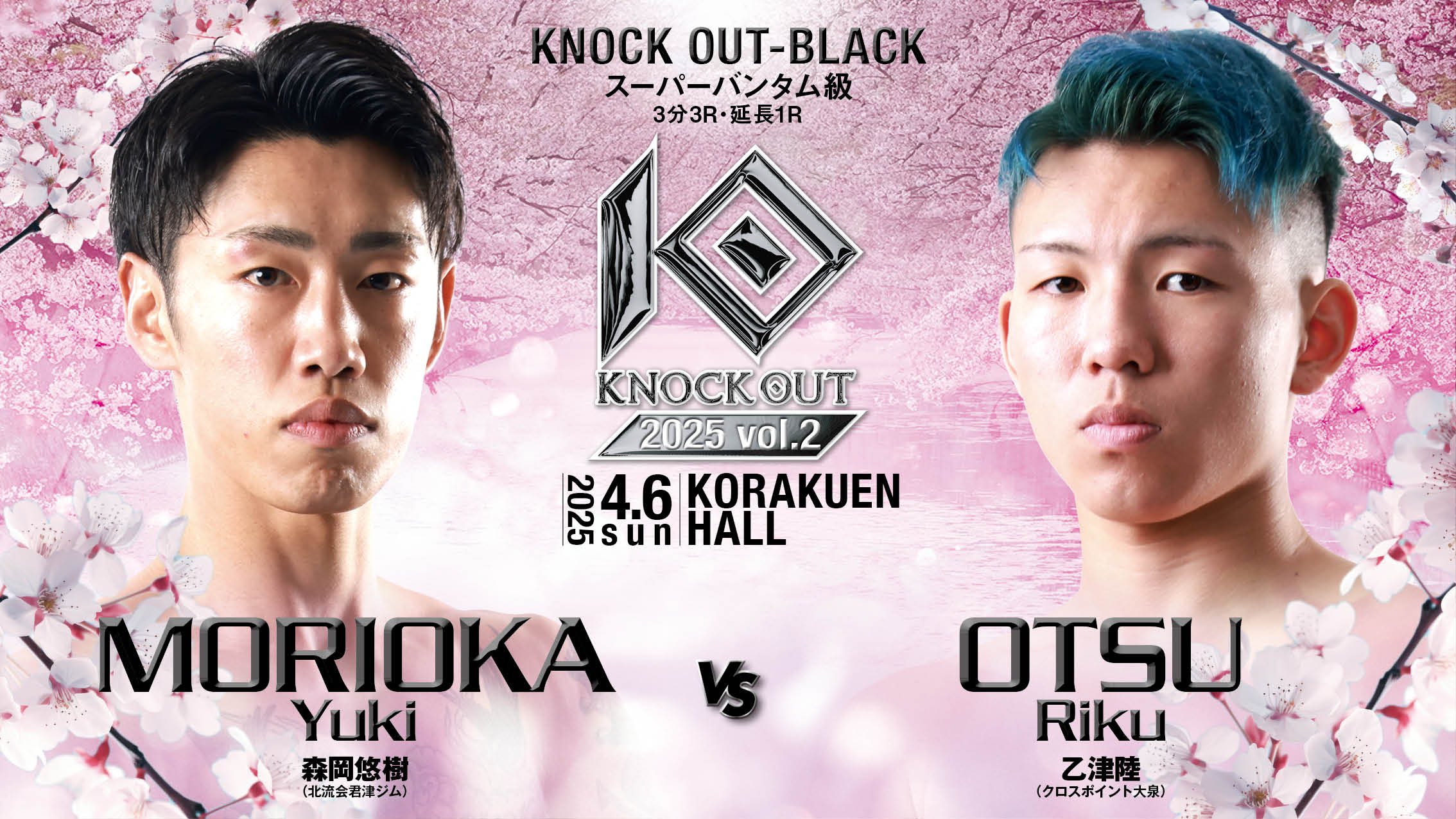 ▼KNOCK OUT-BLACKスーパーバンタム級 3分3R・延長1R 森岡悠樹(北流会君津ジム)vs乙津陸(クロスポイント大泉)