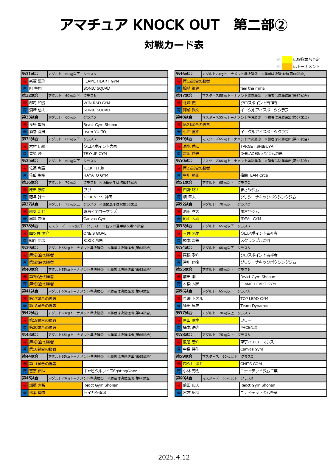 2025年4月12日(土)に新宿FACEで行われます「KNOCK OUTアマチュア」の対戦カードが決定いたしましたので、お知らせいたします。