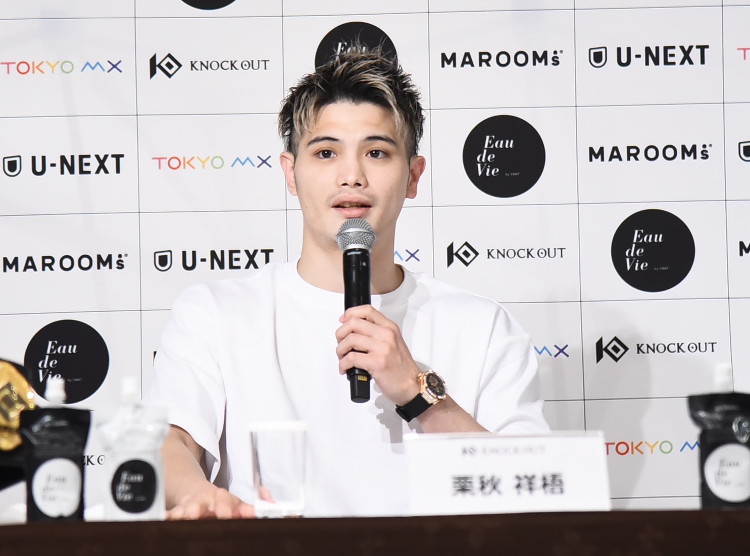 倉本一真 「今回こうやって大きい大会で、初代KNOCK OUT-UNLIMITEDのタイトルマッチを組んでいただき、ありがとうございます。そうしてもらったからには僕も責任あるので、また半端なく盛り上げて、年末に出た大会よりもエグい試合をして勝とうと思っています。2人で面白い試合ができると思うので期待していてください。 (このタイミングでタイトルマッチに関して)UNLIMITEDルールは年末に1回勝たせてもらっただけなんですけど、自分がチャンピオンになるしかないと思って去年出ましたし、やっぱりそういう結果になったと思っているんで、山口さんに『タイトルを早く作ってください、ベルトを作ってください』とお願いして、ここで本当にできたので自分のためにできたと思います。もちろん栗秋選手は強いんで、結果、自分が獲れたら最高なんで獲りたいですね。 (UNLIMITEDルールには慣れた?)前回の試合で勉強になった部分があり、最後のTKOの場面はUNLIMITEDルールだったらスタンドの展開になってもおかしくないなと後々に思いましたし、それだったらもっと立ち上がって顔面サッカーボールキックを出しても良かったなと思ったりとか、いろいろ勉強になりました。あとはタックルで倒した後に、相手がギロチンの状態で耐えて何もしないで審判にスタンドを委ねていたのは、UNLIMITED的には良くないですよね。年末に疑問に思ったところが改善されていると思うので、自分自身もそれをちゃんとアップデートして、年末よりもっとスリルのある、見てて面白い、自分がやってても面白いエグイ試合にしたいと思っています。 (栗秋に対して警戒ポイントは?)身体能力が高いというのが印象にあり、もちろん打撃のチャンピオンなのでそれには気をつけるのはもちろん、ただ身体能力が高いがゆえのタックルもあったりとかすると思うので、そういうのはMMAの経験からしていろいろやり方があるんで、それをUNLIMITEDで出したいですね。 (栗秋が投げ技を出させないで勝つと発言していることを受けて)一応、僕は投神と呼ばれているので、KOされずに投げたいなと思っています。 (打撃戦に関して)打撃戦やりたいですね。でも組んじゃうかもしれないです。ちょっとそれは始まってみてノリで。バチバチに殴り合う気ではいます (UNLIMITEDのベルトを獲ったら今後考えていることは)ベルトを獲って僕はMMAファイターなんでMMAも出たいですし、どんどんUNLIMITEDにも出たいですし、被らなければ毎月のように怪我がなければ試合をしたいなと思います」