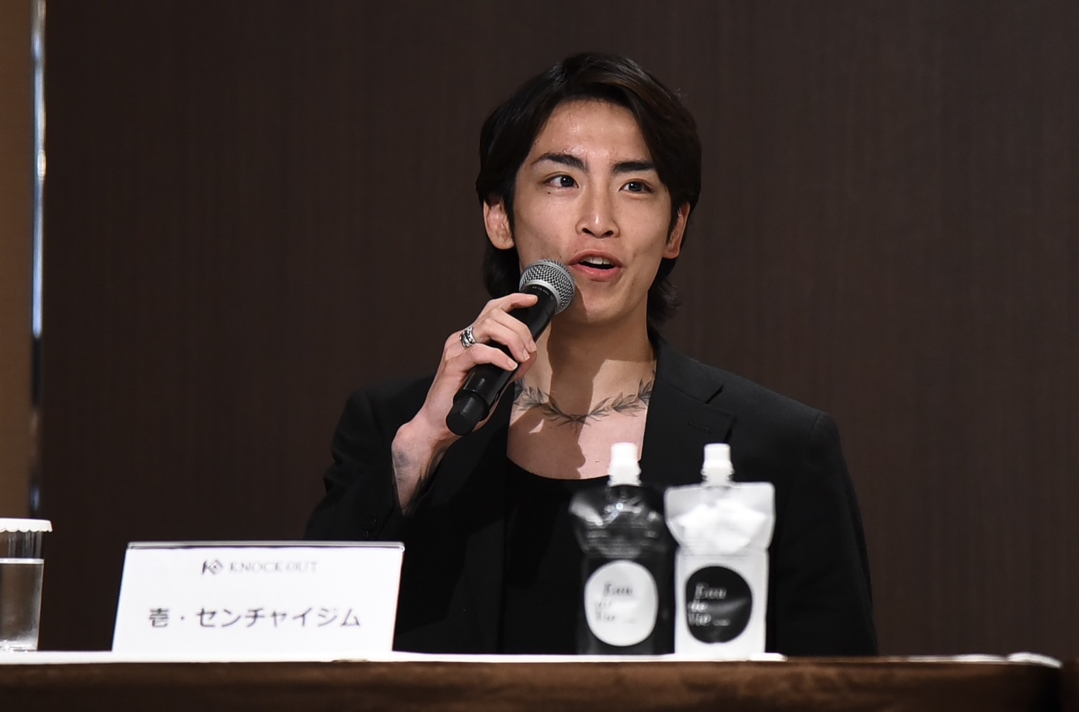 森岡悠樹 「前回の記者会見では参戦決定の発表だけだったんですが、今回はしっかり対戦相手がチャンピオンの壱と決まって嬉しく思っています。年末以上の激闘になるかちょっと分からないんですけど、本気で倒しに行こうと思っているので、是非楽しみにしてください。 (前回の試合を踏まえて今回はどういう試合をしたいか)自分は年末の続きを6月で皆さんにお見せできたらと思います。 (KNOCK OUTタイトル挑戦に関して)ベルトはもちろん欲しいとずっと思っているんですけど、今回、ベルトのことを考えすぎると固くなっちゃったり、勝ちに行くような試合は絶対にしたくないと思っているので、考えずに倒していきたいです。 (KNOCK OUTのベルトへの思い)本当にKNOCK OUTに出たての時なんか、こんなタイトルマッチに挑めることもなかったですし、こういう大きな舞台でタイトルマッチができて本当に嬉しいです。やっぱりKNOCK OUTのベルトは偉大なもんだと思っているのでほしいと思ってます。 (OFGでのアジャスト具合について)OFGだけが自分は最初不安でした。前回の試合前はスパーやマススパーでは普通のグローブを使っていたので、試合当日は距離感が合わなくてちょっと苦労したので、今回も決まってすぐからOFGでしっかりスパーも練習しているので完璧にアジャストできているのではないかと思います」