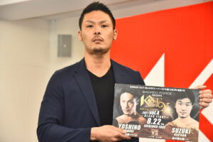 なお、KNOCK OUT同階級のBLACK王者・海人について吉田は「(海人が)日菜太さんに勝った試合を会場で観ていましたが、凄く強い選手だなと。4月の試合で負けて大したことはまだ言えません。そういう発言権を含めて次の試合でしっかり勝っていけば、そういう相手も見えてくると思います」と、海人との王者対決も意識しているようだった。