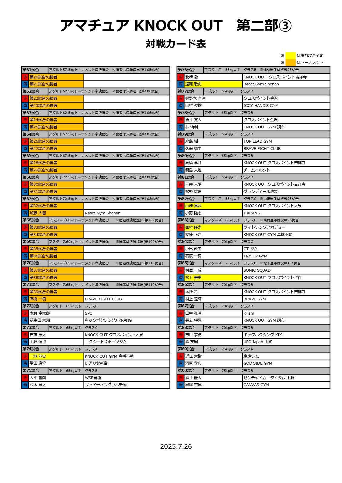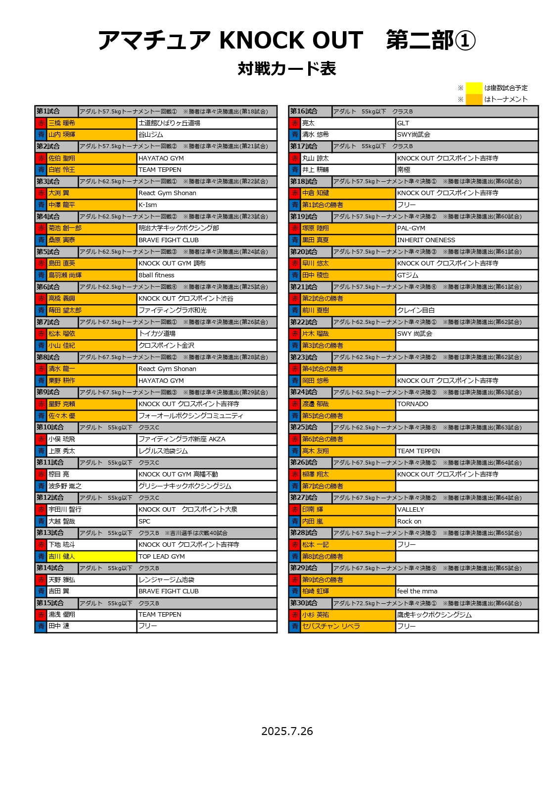 ▶選手・セコンドの皆様は、試合が終わりましたら順次ご帰宅ください。