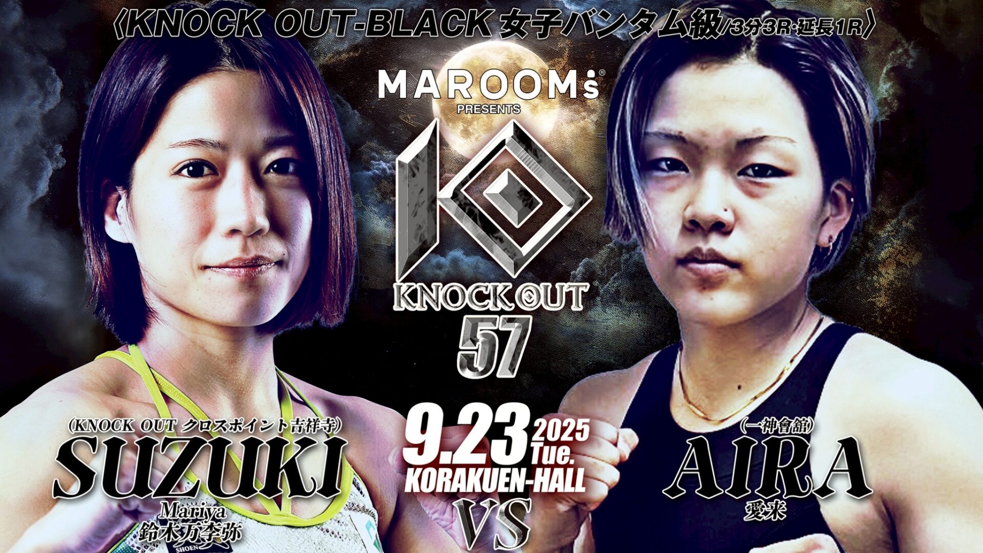▼KNOCK OUT-BLACK女子バンタム級 3分3R・延長1R 鈴木万李弥(KNOCK OUT クロスポイント吉祥寺)vs 愛来(一神會舘)