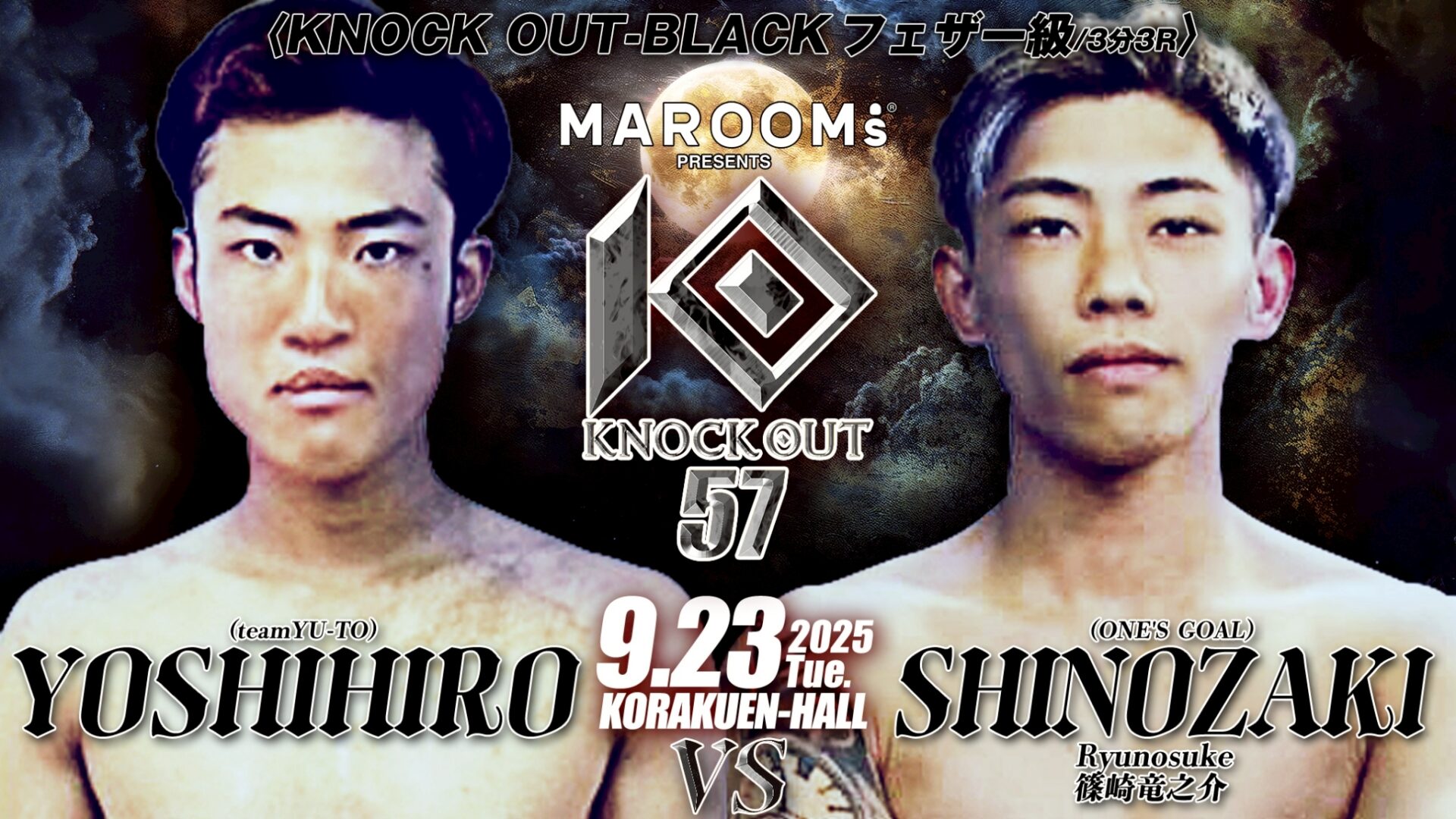 ▼KNOCK OUT-BLACKフェザー級 3分3R YOSHIHIRO(teamYU-TO)vs 篠崎竜之介(ONE'S GOAL)