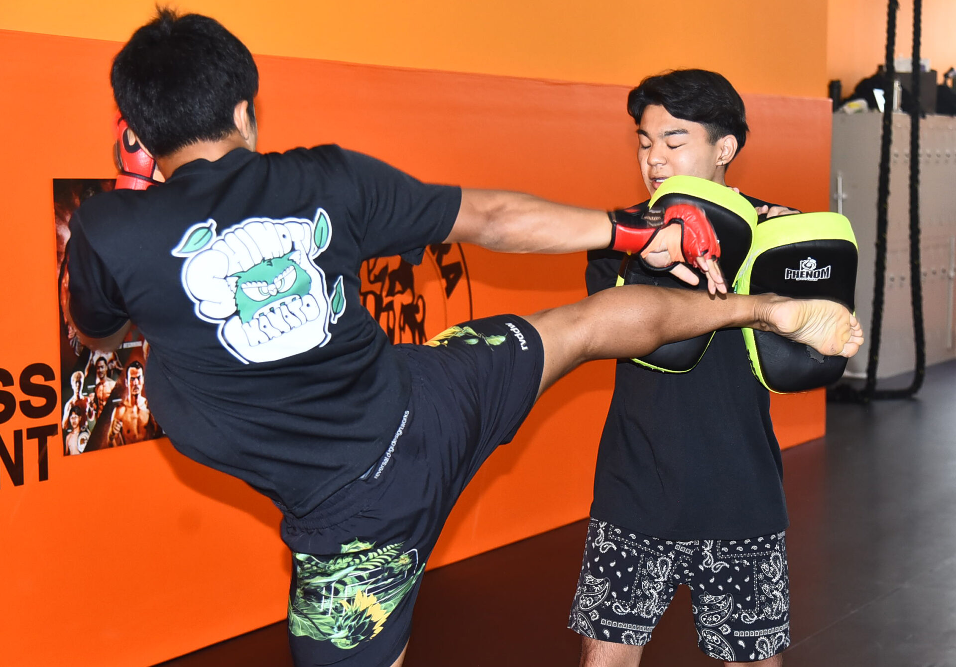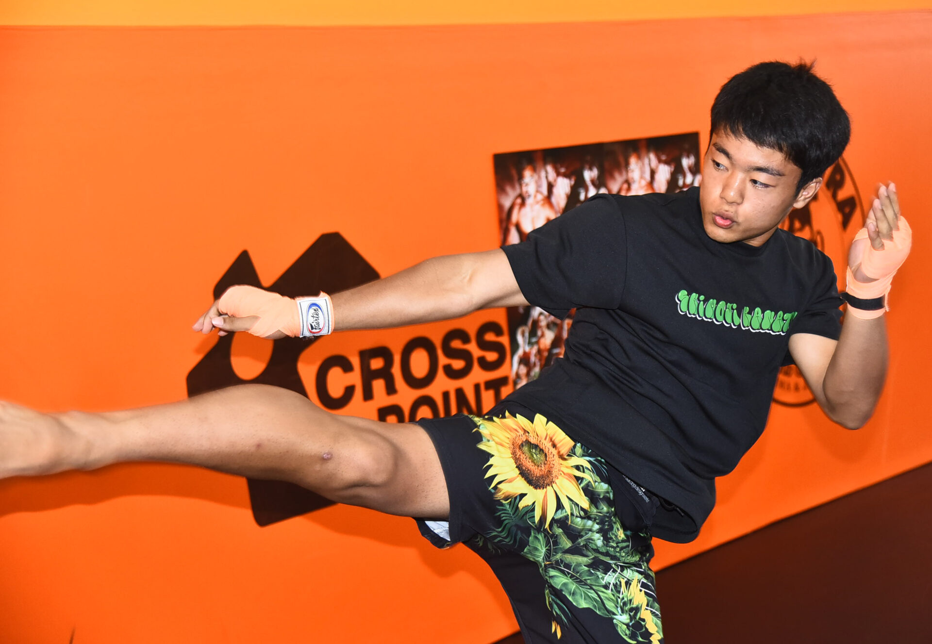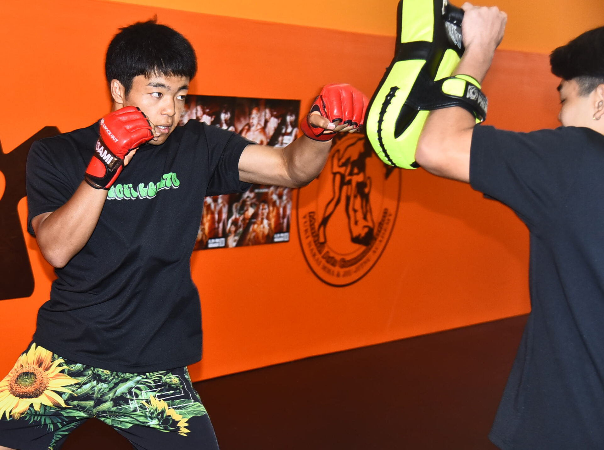 この日の公開練習では、シャドーボクシングだけでなく、2つ下の弟・絃人が持つミットにパンチ、重みのあるミドルを叩きこんでジム内に快音を響かせた。