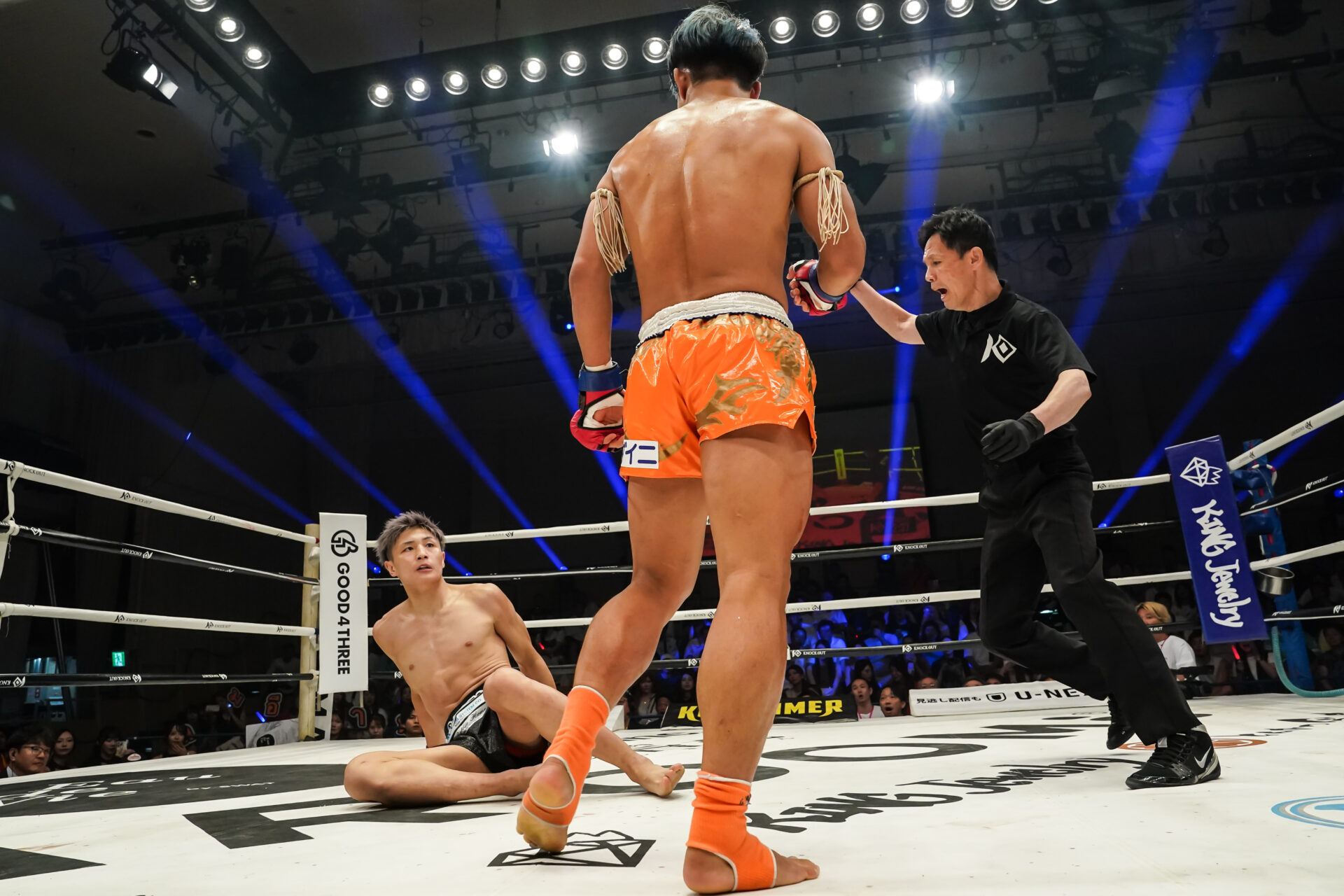 久井 何ですかね。「ハイキックとかはいらん!」っていう指示やったんですけど、試合中に「当たる」って思って打って、それでもらったので。あんまり作戦通り動けてなかったですよね。