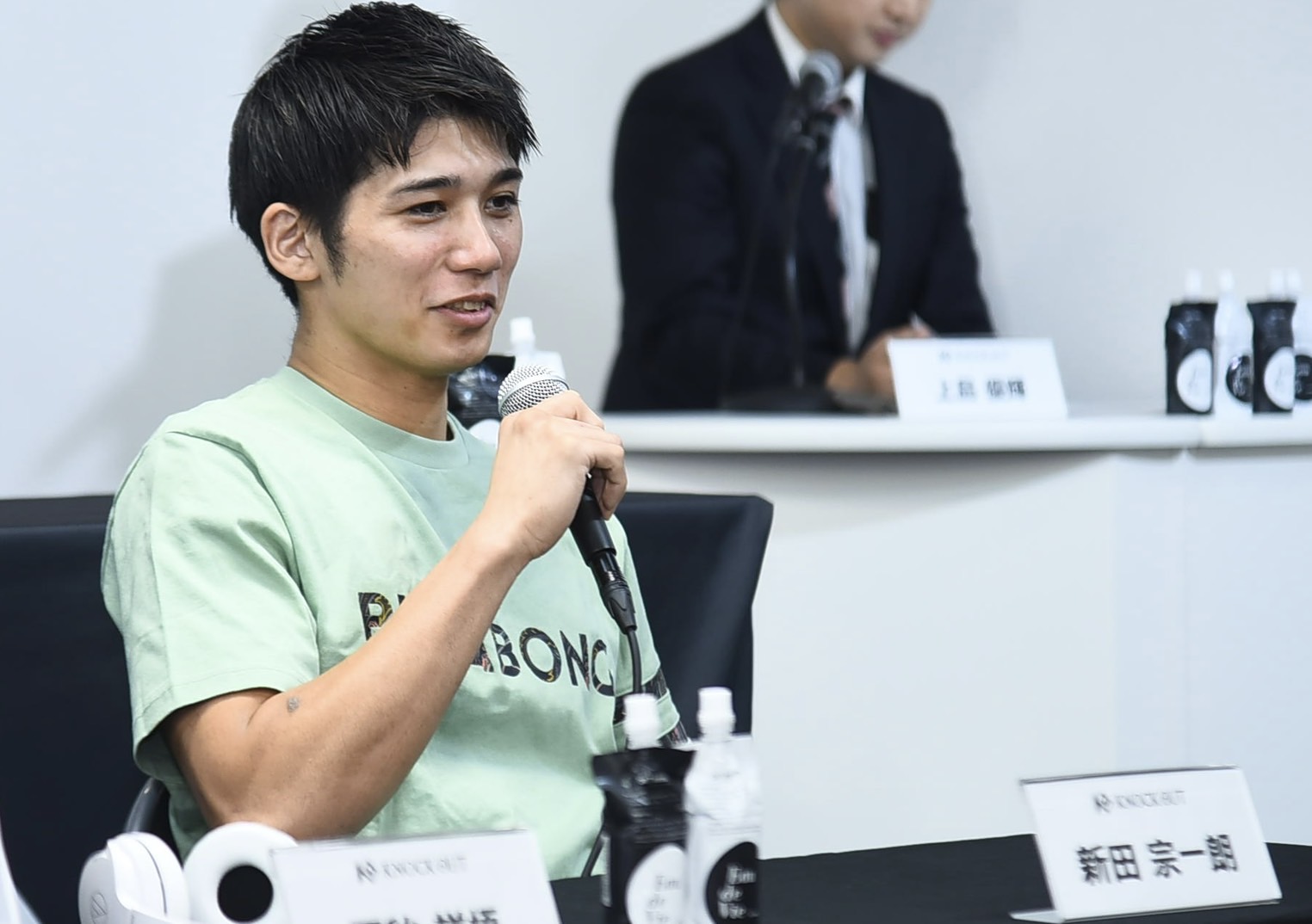 rnrnUNLIMITEDルール初挑戦となる新田は「トーナメントには祥梧さんがいるんですけど、60kgは自分の階級だと思っているのでやってみようかなと思って応募しました。自信は意外とあるので、期待していてください」とコメントすると、山口代表は「ルールが違うのは分かってる? 僕は出ることを何にも知らなく、スタッフから新田から応募が来たという報告を受けました。祥梧は『嫌なんですけど』と言っていたのですが、『どうせ負けるから大丈夫でしょ』と(笑)。どれだけ真剣に練習をやっているか。このUNLIMITEDルールは、キックの実績があるからといって勝てるもんじゃない。アマチュアでちゃんとやっている人たちにテイクダウンされたらキックのチャンピオンとはいえ勝てません」と心配すると、新田は「運動神経で何とかなると思っているので」と問題ないとした。