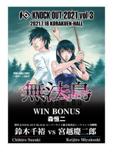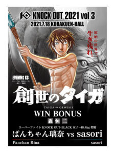 2021年7月18日(日)後楽園ホールで行われます『KNOCK OUT 2021 vol.3』の下記試合に「創世のタイガ賞」「無法島賞」として、総額100万円のWINボーナスが贈られることが決定いたしましたので、お知らせいたします。
