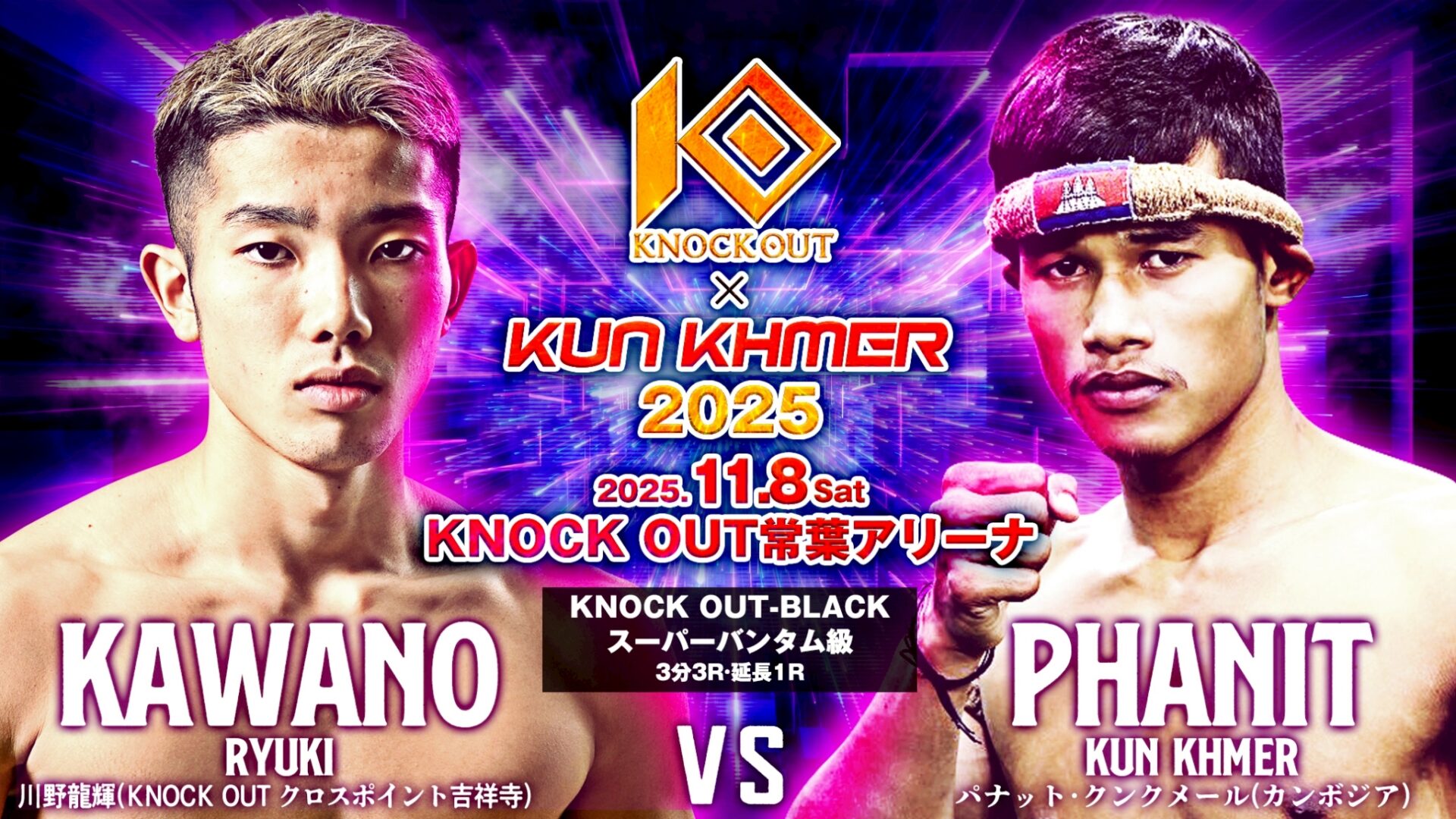 先鋒戦で川野とキックボクシングルール(この試合のみ)で対戦するパナット・クンクメール(カンボジア)は162cm、59戦55勝(19KO)2敗2分の23歳。