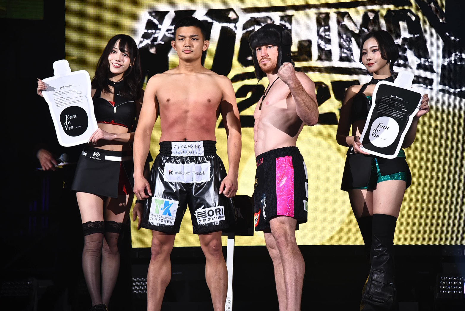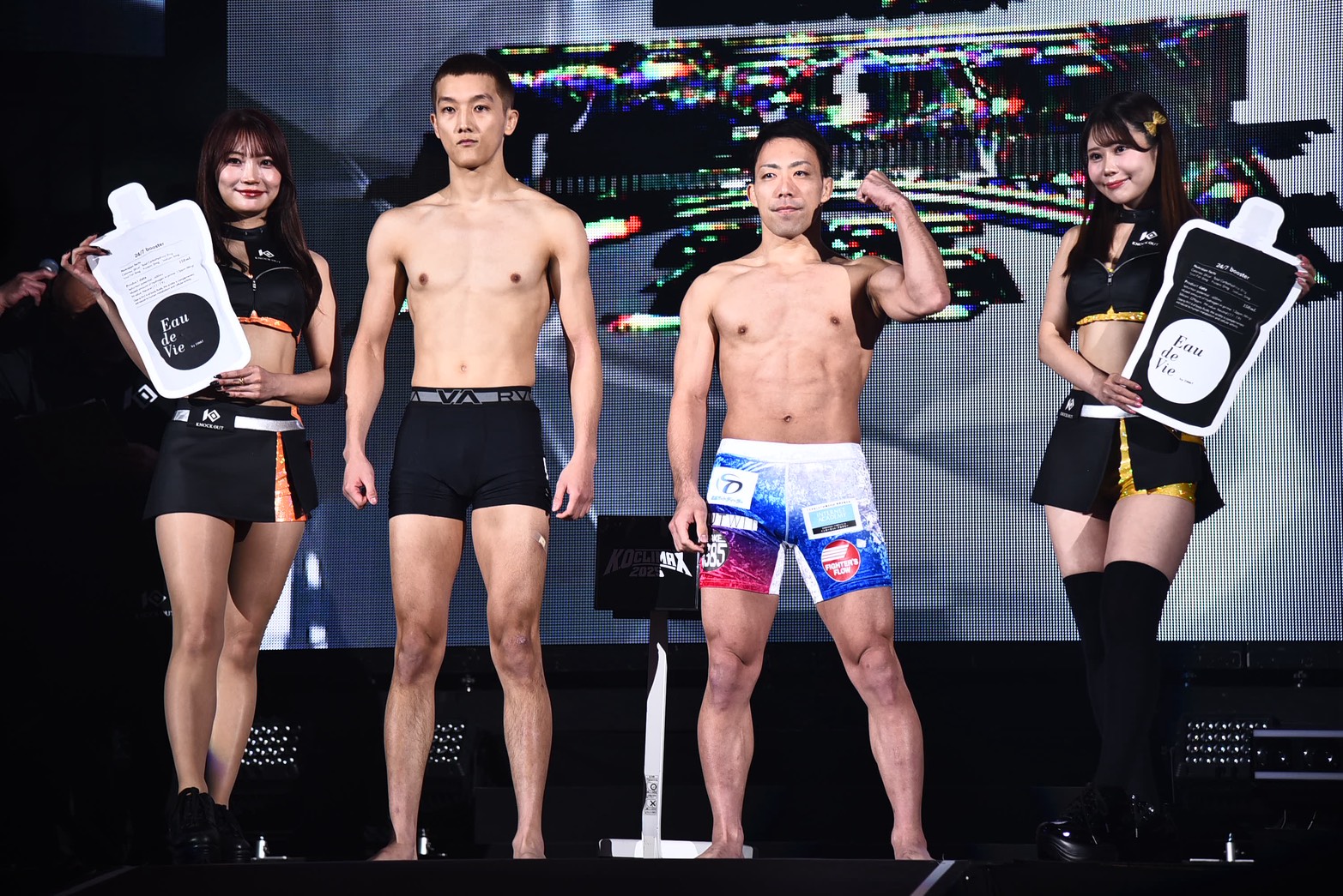 (明日どんな存在になりたいか)僕だけなんか無名な感じなんですけど、2試合とも衝撃的なKOをして新しいスターが出てくるような感じで、明日この会場に集まるお客さん全員をぶち上げたいと思います」