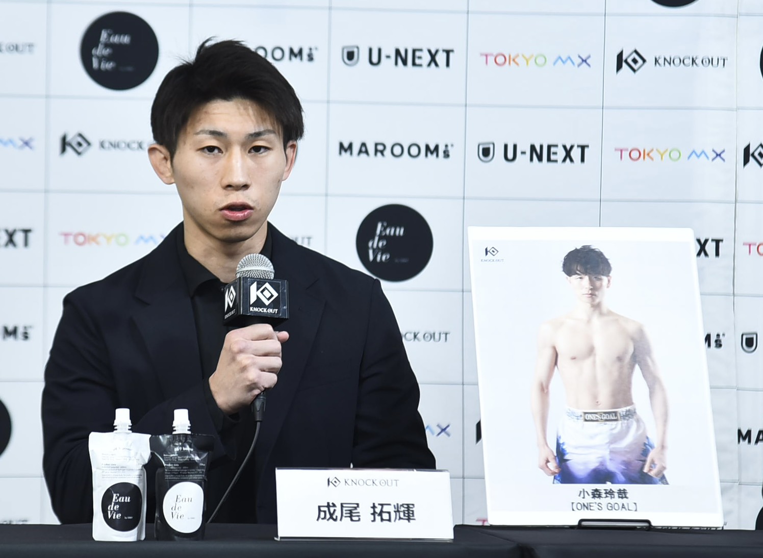 会見欠席となった小森からはメッセージが届いており、「このような大きなチャンスをいただき、KNOCK OUT関係者の皆様に心より感謝申し上げます。成尾選手は HOOST CUPライト級チャンピオンであり、実績、実力ともに本当にリスペクトしております。この試合に勝つことでKNOCK OUT-BLACKスーパーフェザー級のベルトにつながる大きなチャンスだと思っていますので、当日はKNOCK OUTにふさわしい、魂のこもった試合にして必ず勝ちます。皆さん応援お願いいたします」と読み上げられた。