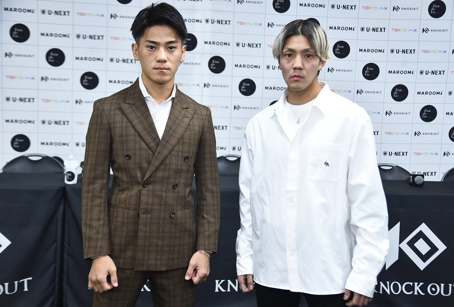 迅は「相手は他団体の元チャンピオンで、キャリアの僕の5倍以上あるから倒しがいのある選手を用意してもらったので普通に倒したいと思います」といえば、竹内は「前回5連勝している強い選手に何とか勝ったんですけど、今度の相手は2連続KOというめちゃくちゃ強い選手です。KNOCK OUTは僕のことが嫌いなのかなと思うくらい強い選手を用意するので勘弁してほしいです。でも、この試合で勝ったらベルトに近づけると思うので、胸を張れるつもりで挑みます」と気合十分。