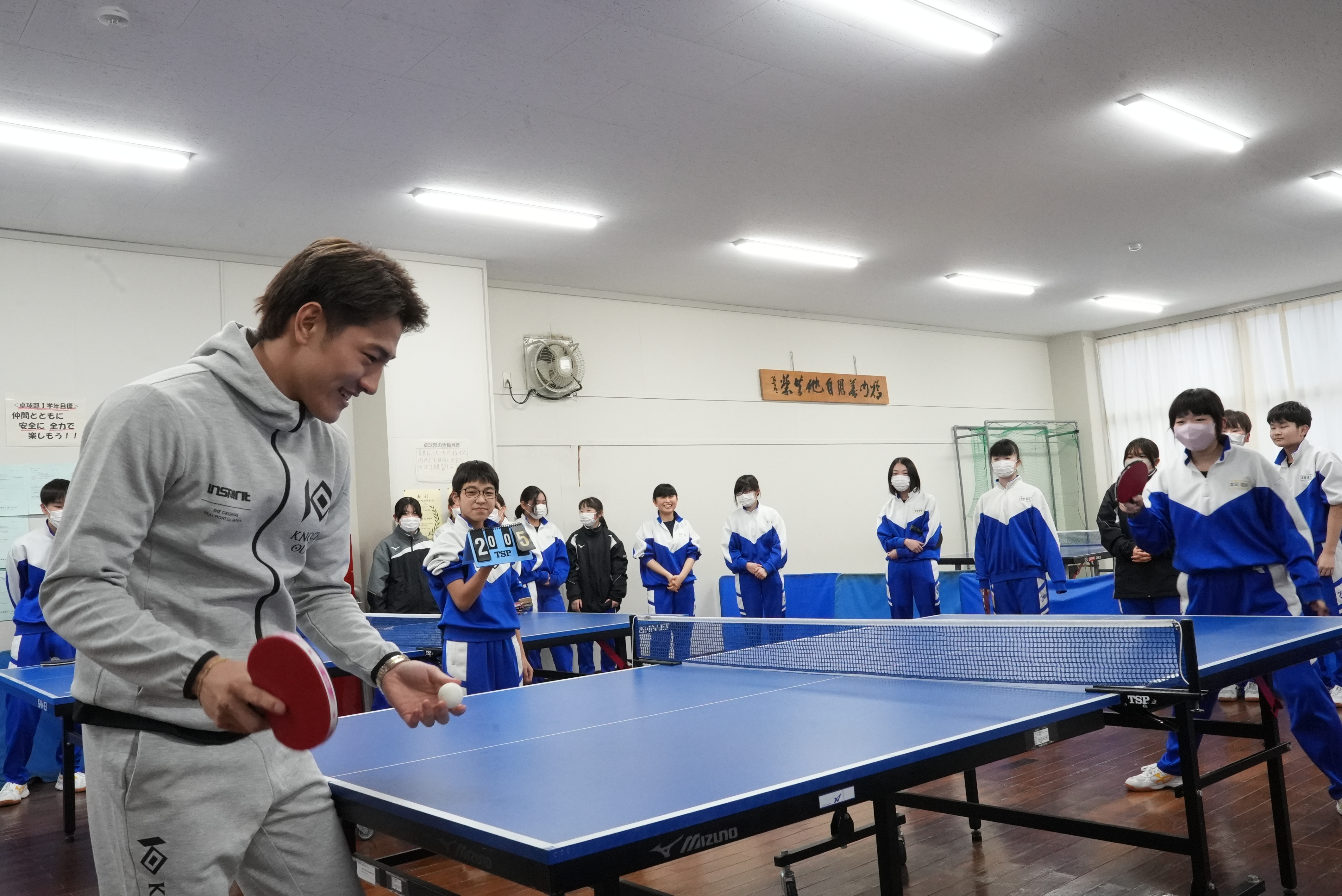 また、龍聖選手は卓球部・バスケットボール部・バレーボール部の生徒たちとスポーツ交流も実施。卓球対決やフリースロー対決、バレーボールのアタック・レシーブなどで交流し、生徒たちと楽しい時間を過ごしました。