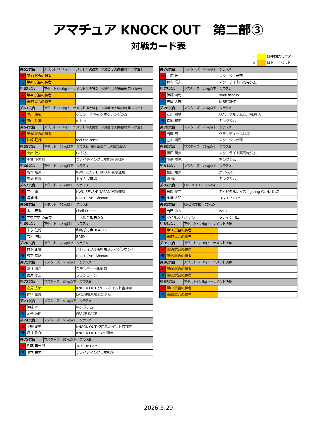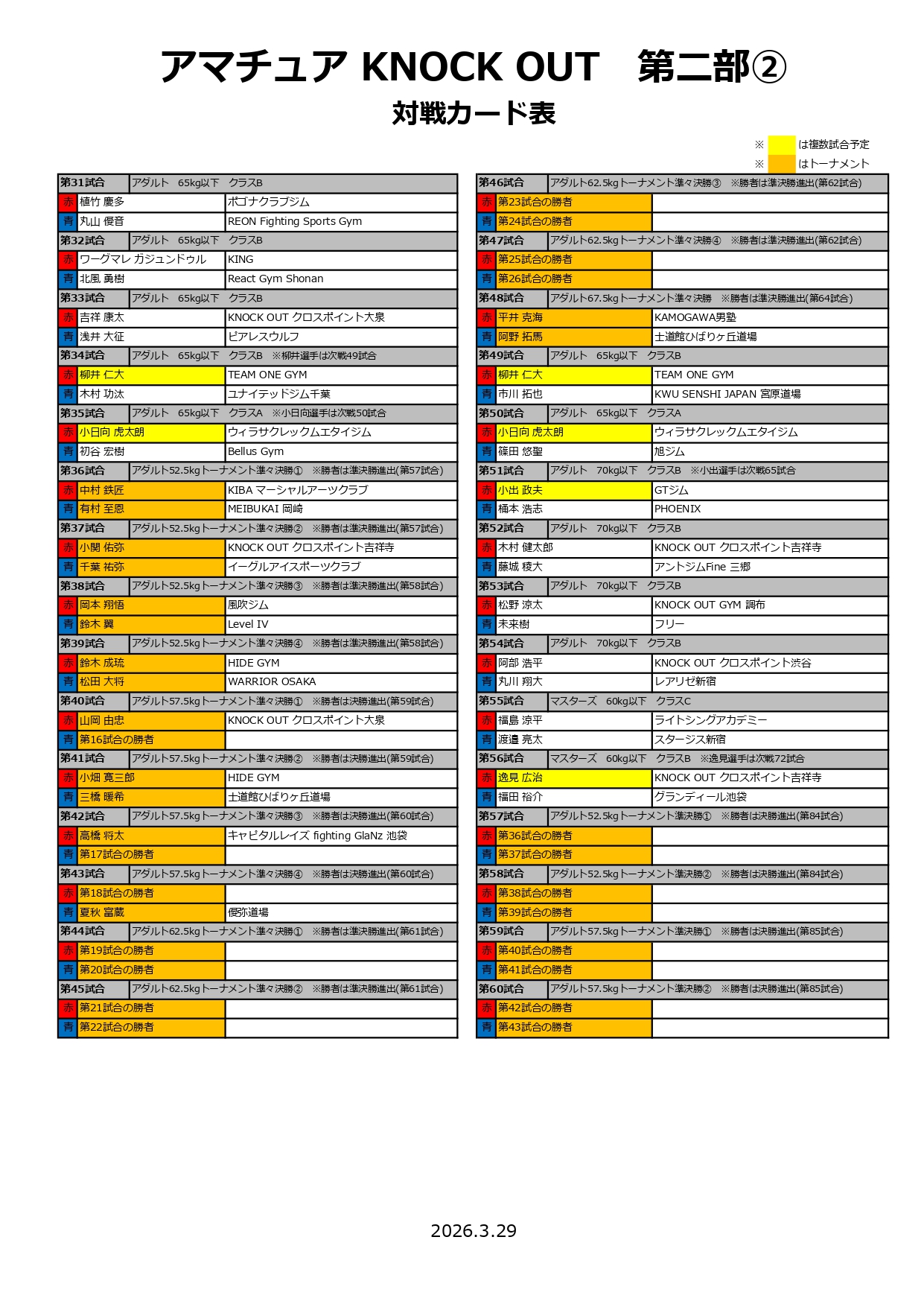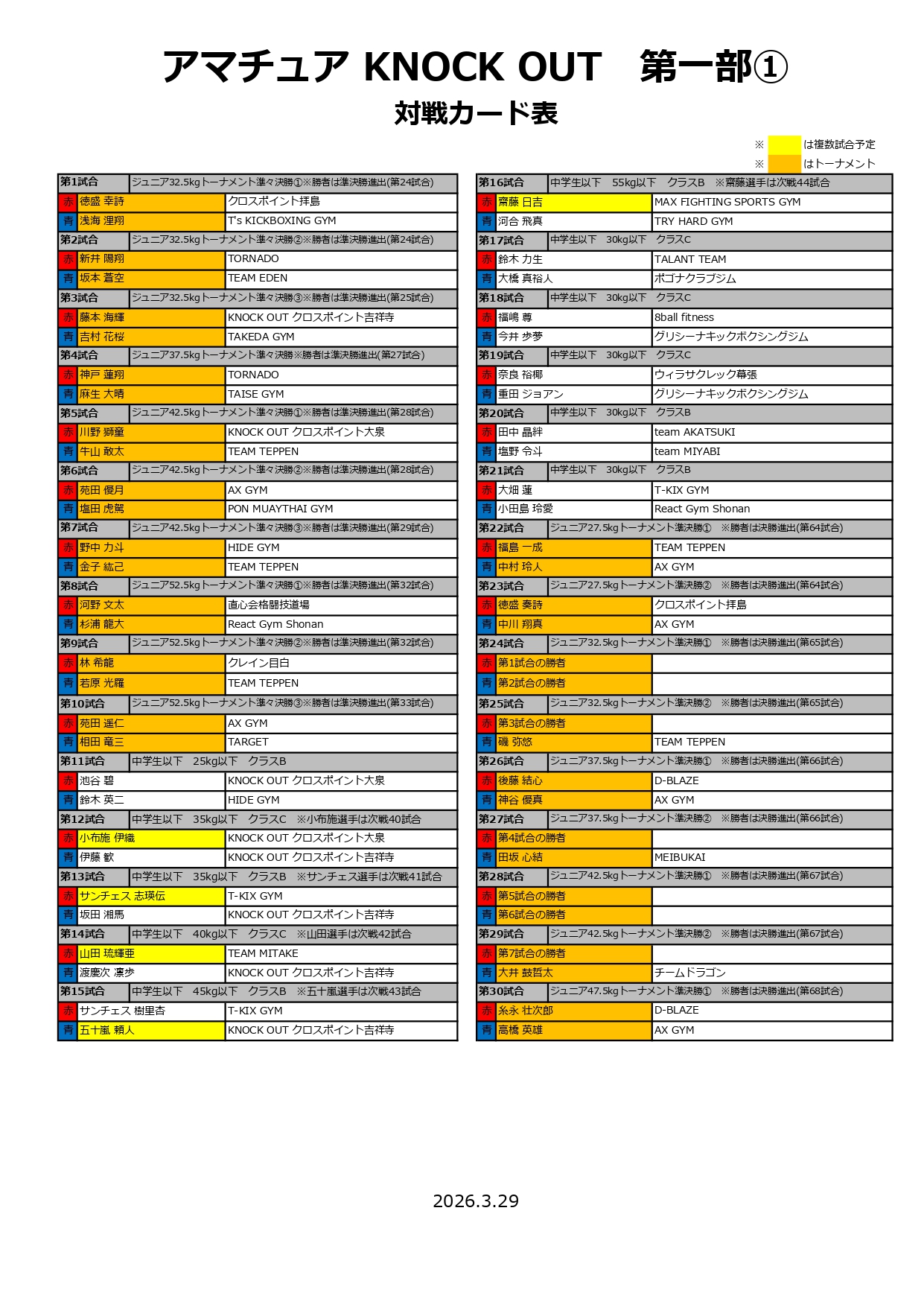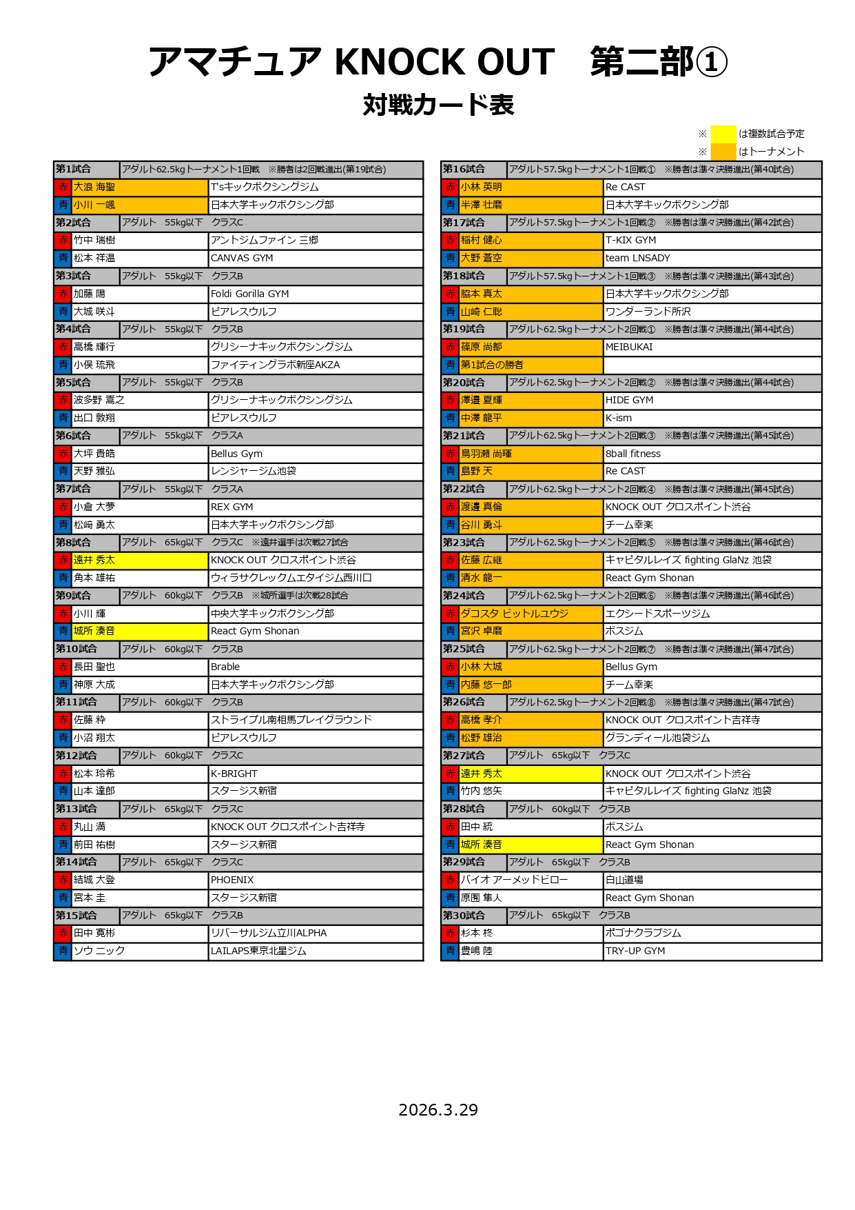 2026年3月29日(土)に新宿FACEで行われます「KNOCK OUTアマチュア」の対戦カードが決定いたしましたので、お知らせいたします。