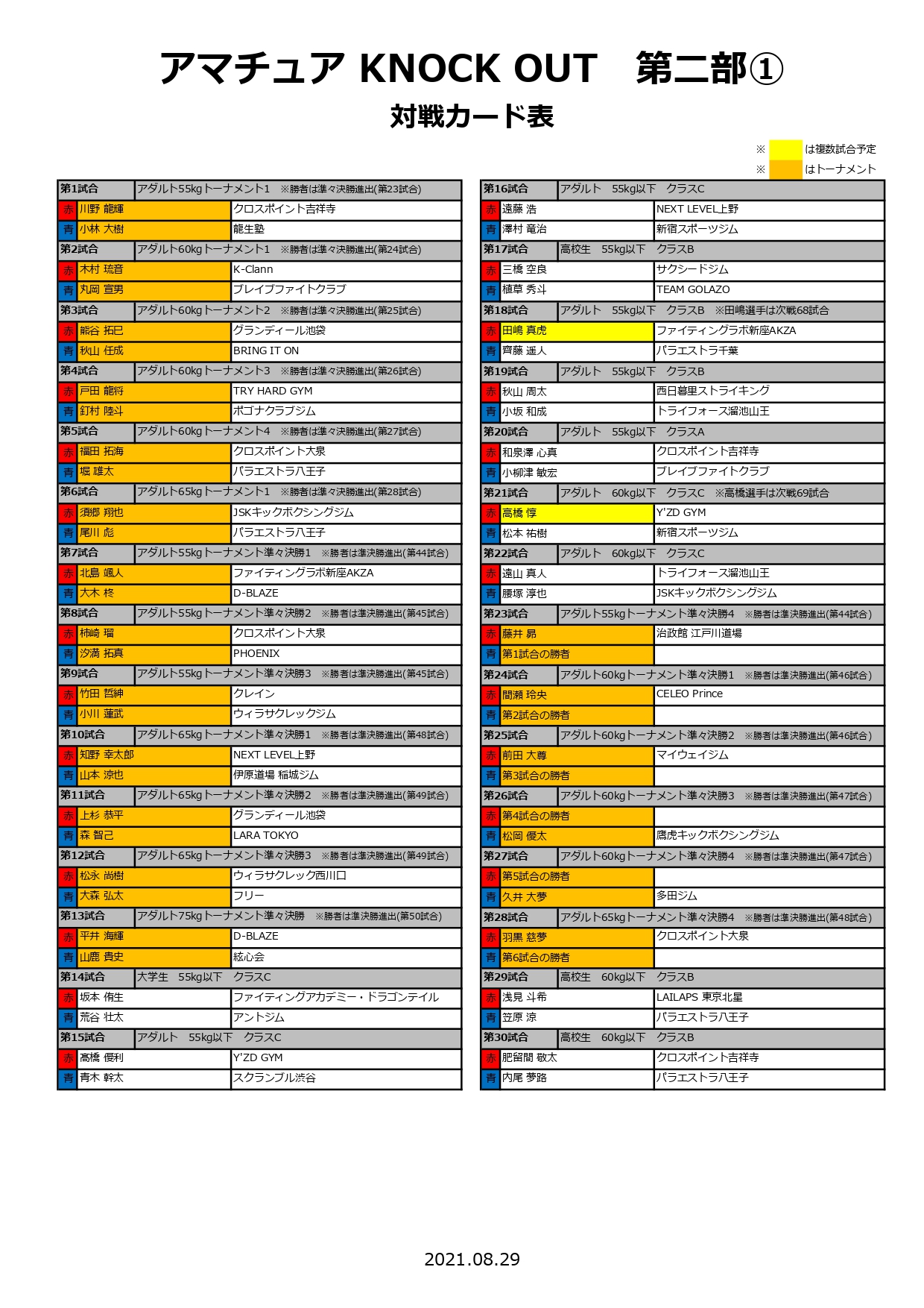 株式会社Def Fellowでは、2021年3回目の『KNOCK OUTアマチュア大会』を8月29日(日)新宿FACEにおいて開催します。 今大会では、クラスAで7つのカテゴリーにおいて「チャンピオン決定トーナメント」を実施。 中学生以下、高校生、大学生、アダルト、それぞれの部でワンマッチを全122試合を予定しています。