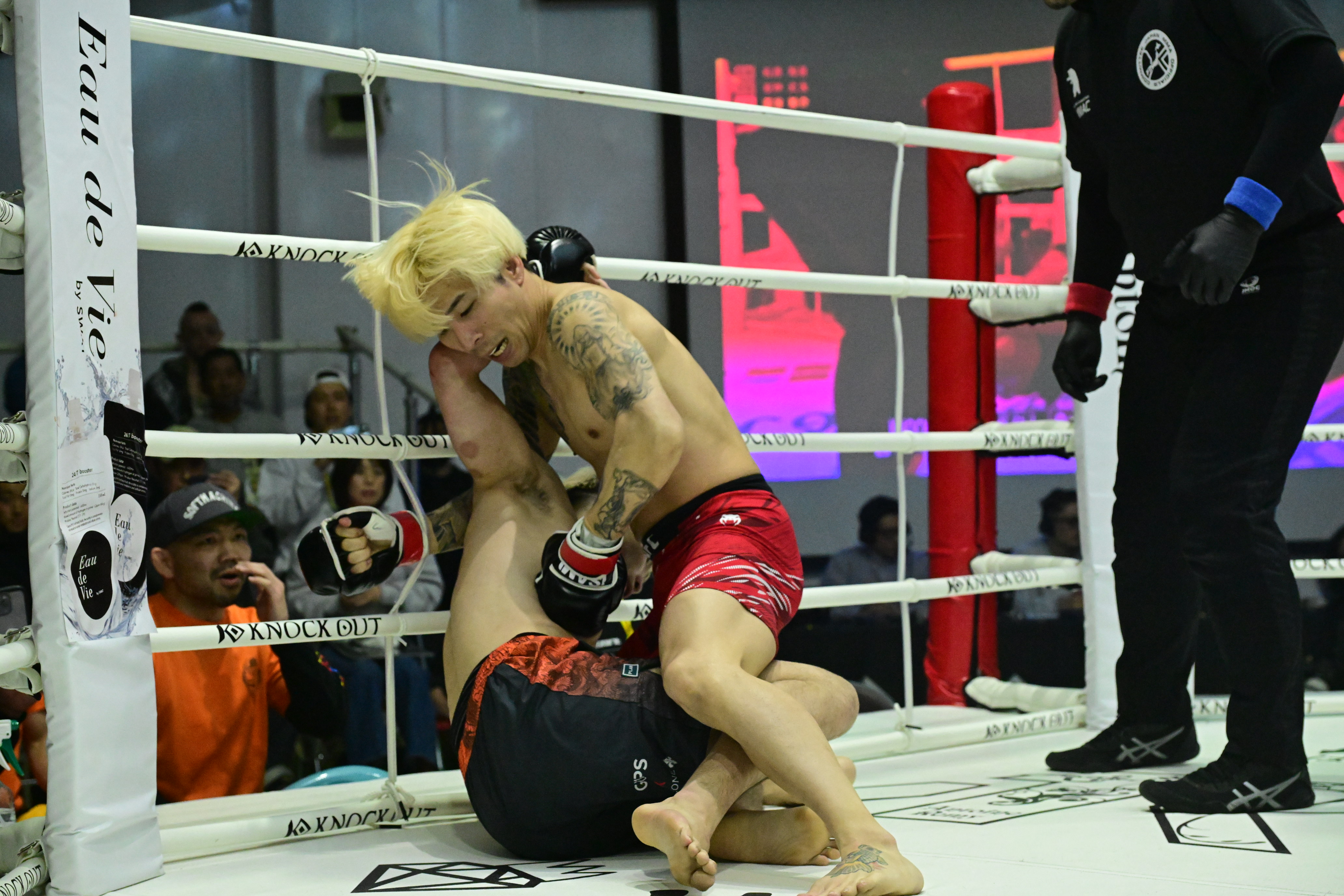 「自分的には今回の試合で結構感覚が掴めていて、今のところ僕は今回の試合も含めて7戦やってるんですけど、7戦とも全部、明らかに昨日の自分よりも進化していて。今回でいうと、タックルのタイミングと蹴りのタイミング、打撃を出すタイミングがカチッとハマった瞬間があったので、ここからの僕は強いと思います。まだ具体的なオファーはないので、まずはAMMACを主軸にアマチュアで戦績を積んでいくことを目標に頑張ろうと思います」