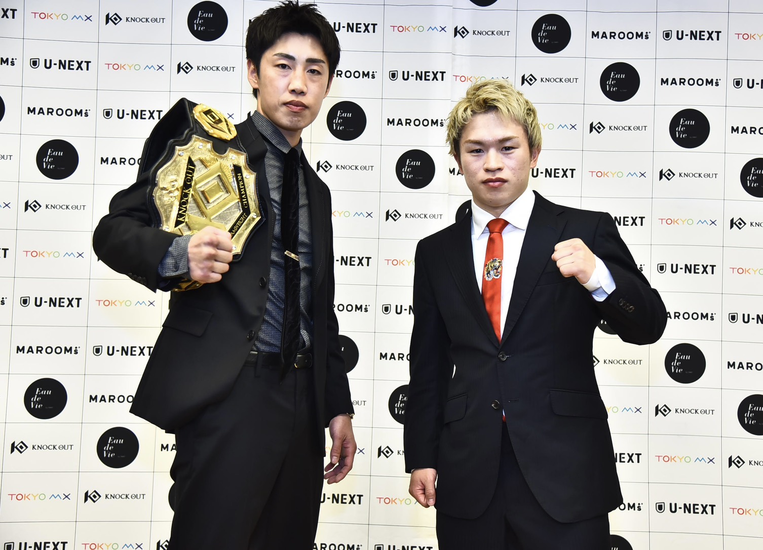前回の結果を受けて、晃貴は「前回戦ったときに、ずっと森岡選手側のコーナーで戦っていて、結構セコンド陣からの作戦を言っていたのを覚えているので、それを警戒して結果は変わらないと思います。前回と同じく、絶対盛り上がると思うので終わる時も一瞬だと思います。KNOCK OUTらしい試合をして自分が一瞬で終わらせて自分がタイトルを獲ります」と返り討ちに自信を見せれば、森岡は「展開は同じだと思いますが、結果だけ変わります。自分のセコンドの声を聞いていたみたいですけど、自分は試合中のセコンドの声を聞いていないので、そこは何も怖くないです。自信を持って攻めて、次は勝ちます」と意気込む。