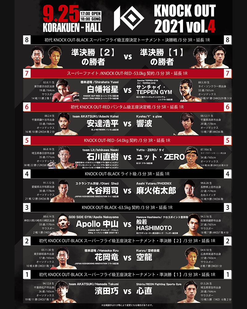 9.25 KNOCK OUT 2021 vol.4|全8カードの試合順が決定!