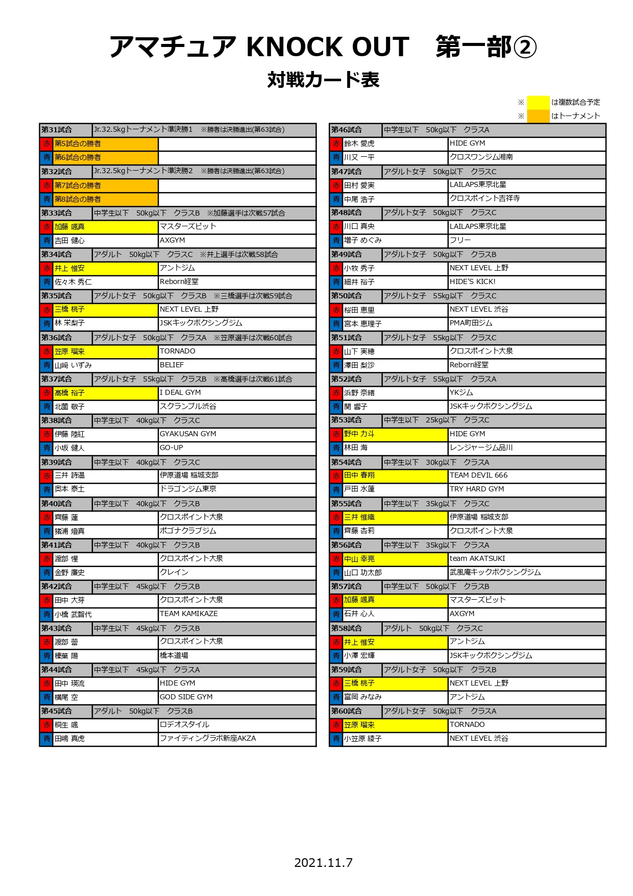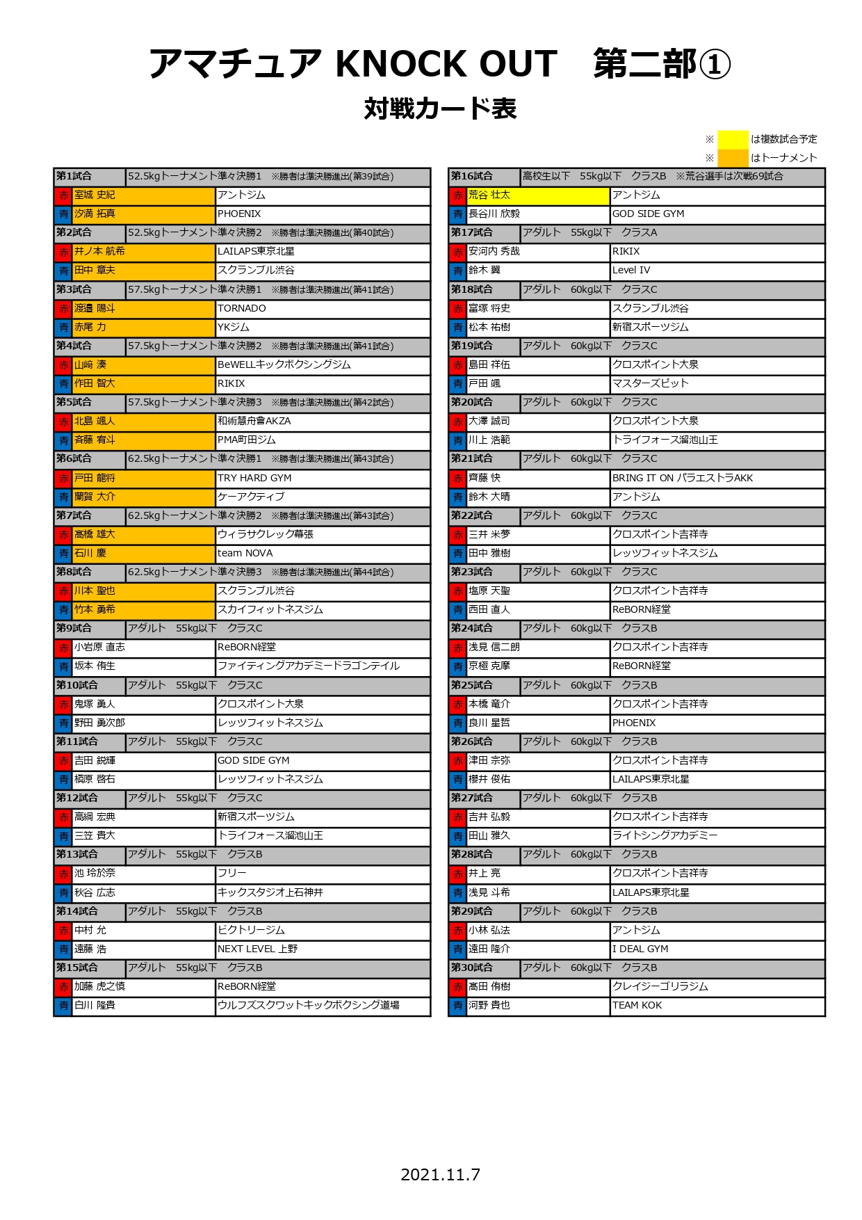 2021年11月7日(日)に新宿FACEで行われます「KNOCK OUTアマチュア」の対戦カードが決定いたしましたので、お知らせいたします。