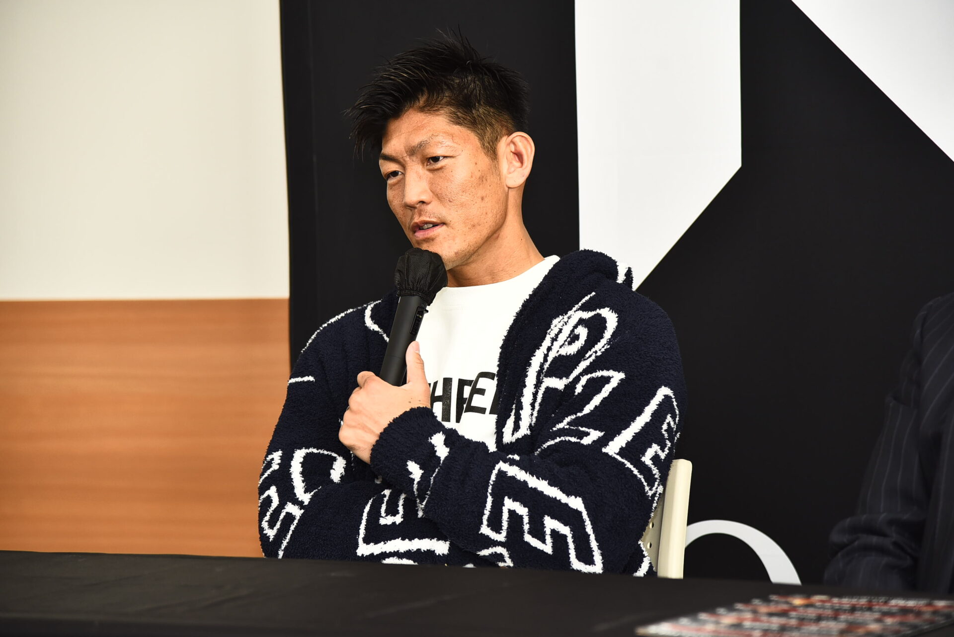 「今日は勝者会見ということですが、自分としては謝罪会見ぐらいのつもりで来ました。誰よりもアグレッシブに熱い試合をしようと思ったんですけど、悔しい気持ちの方が大きく、本当にすみません。また出る時は、爆発させるので次こそ期待してほしいです。