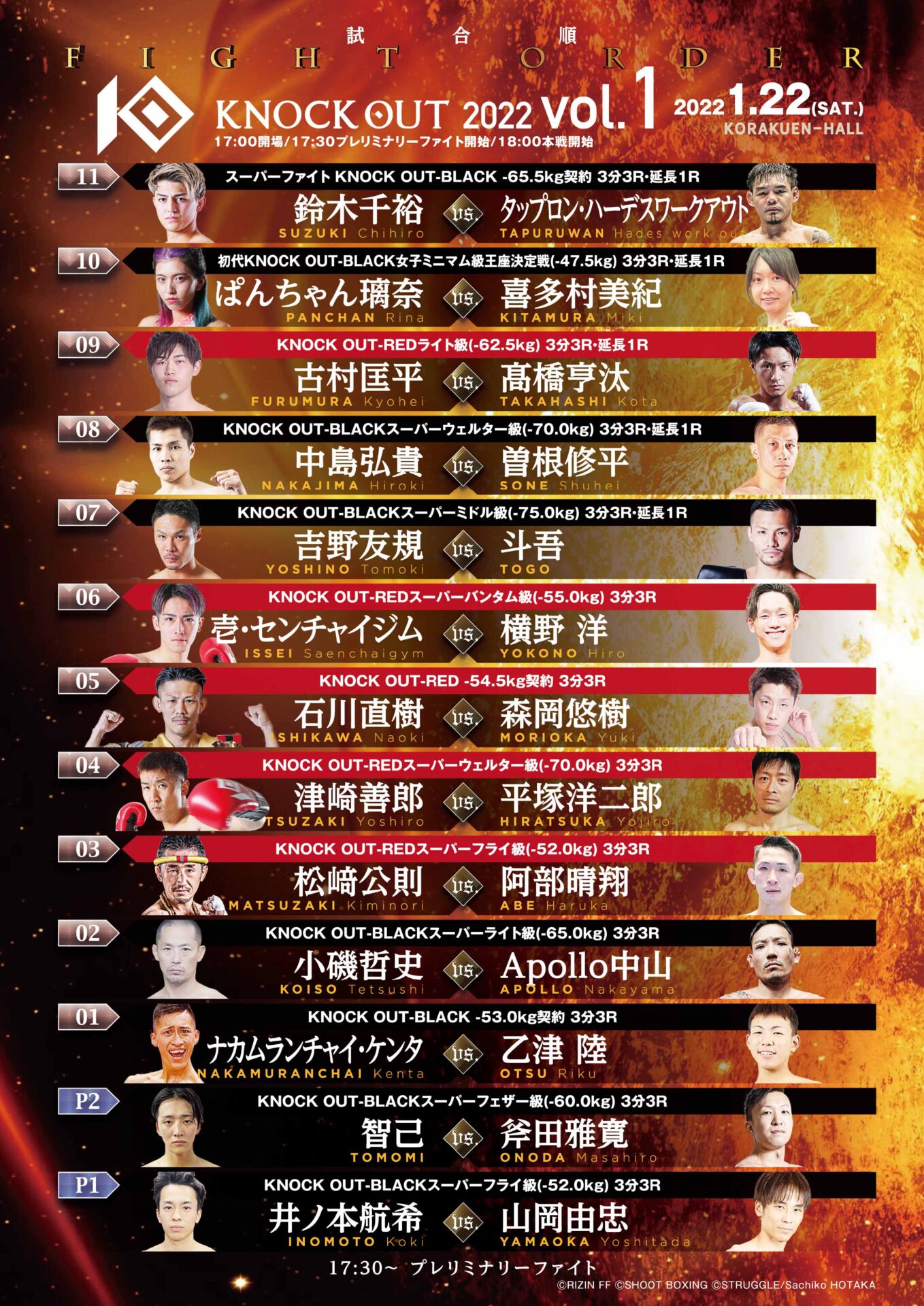 1.22 KNOCK OUT 2022 vol.1|全13カードの試合順が決定!