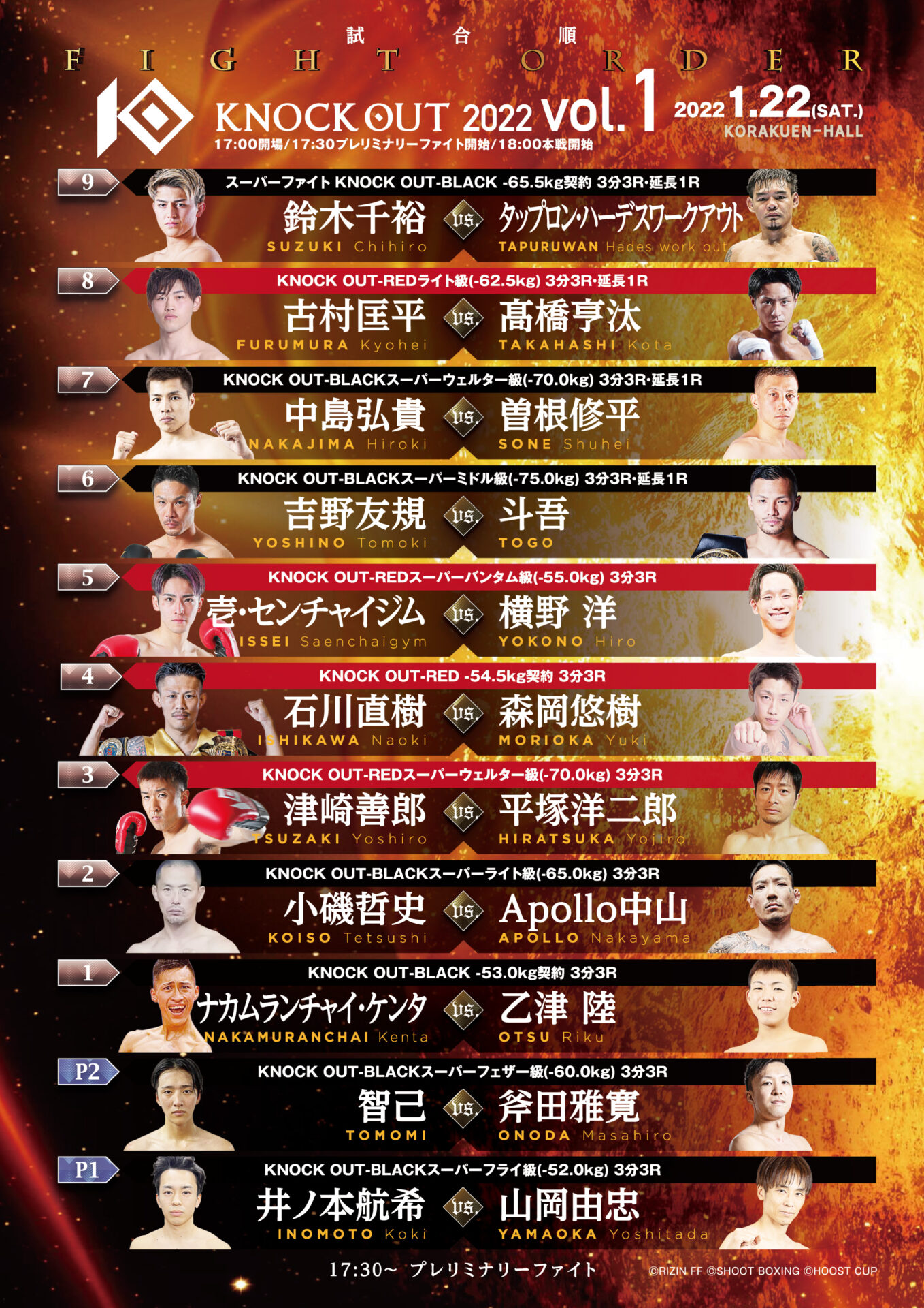 この欠場を受け、KNOCK OUT実行委員会では双方のジムと協議、調整しました結果、この2試合を次回3月12日(土)後楽園ホール大会に延期して実施することを決定しました。