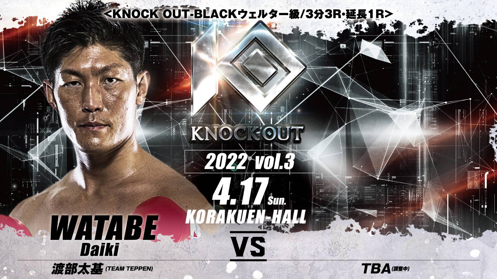 渡部は昨年11月の『KNOCK OUT』で復帰し、松山翔に判定勝ち。今回は2度目の『KNOCK OUT』参戦となる。対戦相手は現在調整中。