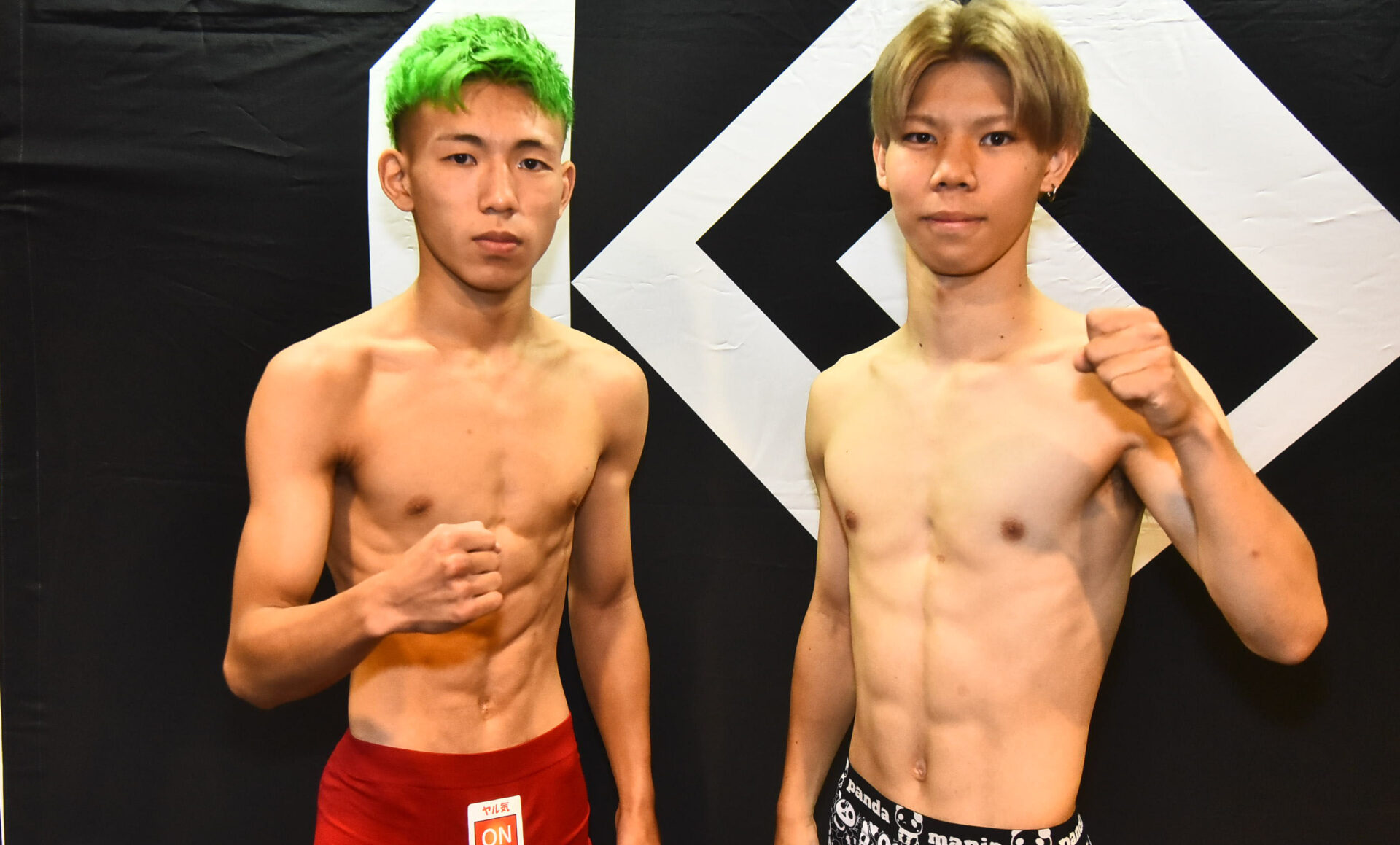 ▼第1試合 KNOCK OUT-BLACKフェザー級(-57.5kg)/3分3R 福田拓海(クロスポイント大泉)=57.15kg vs 山本響己(K&K BOXING CLUB)=56.5kg