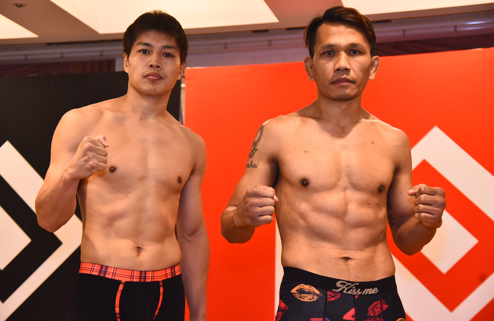 鈴木宙樹(クロスポイント吉祥寺)は63.7kg、西岡蓮太(龍生塾)は64.0kgジャストで計量をクリアーし、あとは試合のゴングを待つのみとなった。