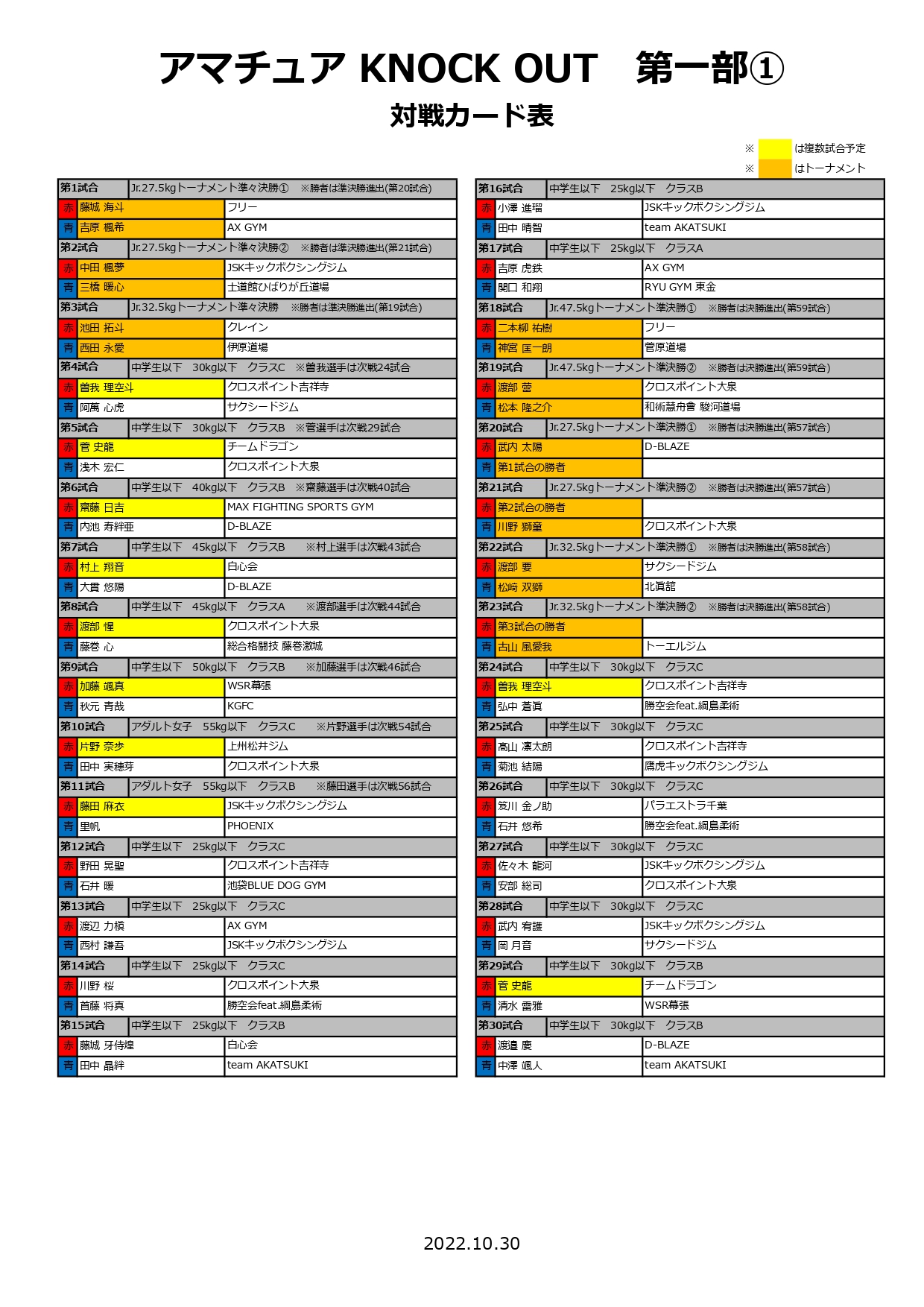 2022年10月30日(日)に新宿FACEで行われます「KNOCK OUTアマチュア」の対戦カードが決定いたしましたので、お知らせいたします。