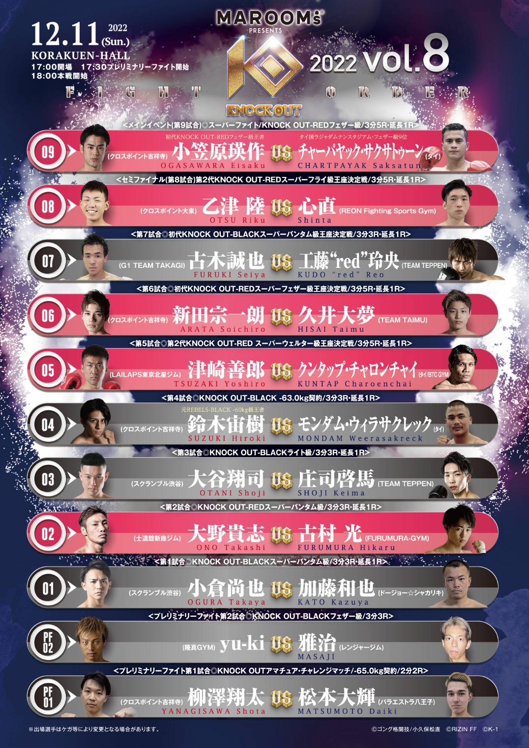 12.11 MAROOMS presents 「KNOCK OUT 2022 vol.8」|FIGHT ORDER公開!