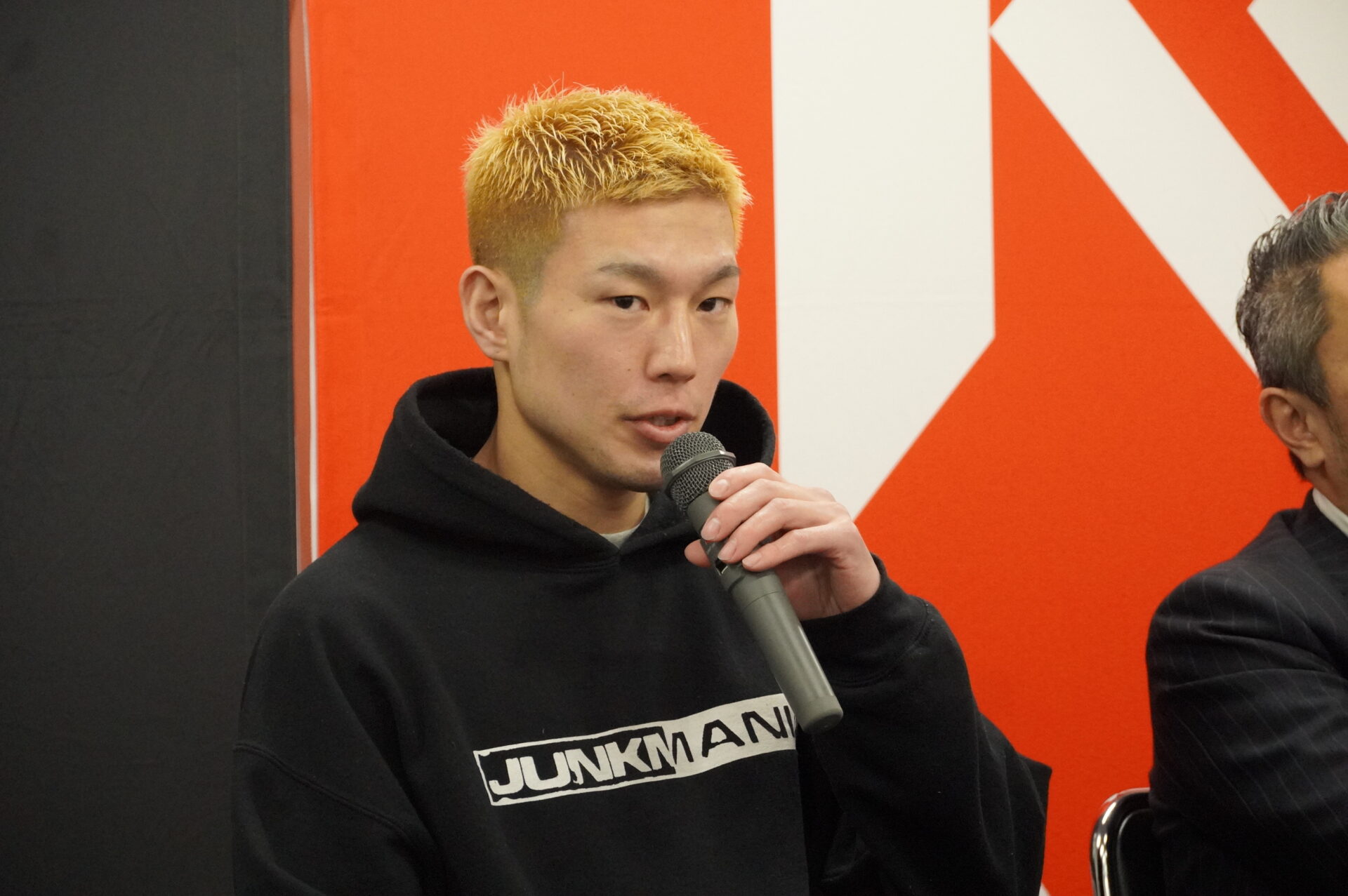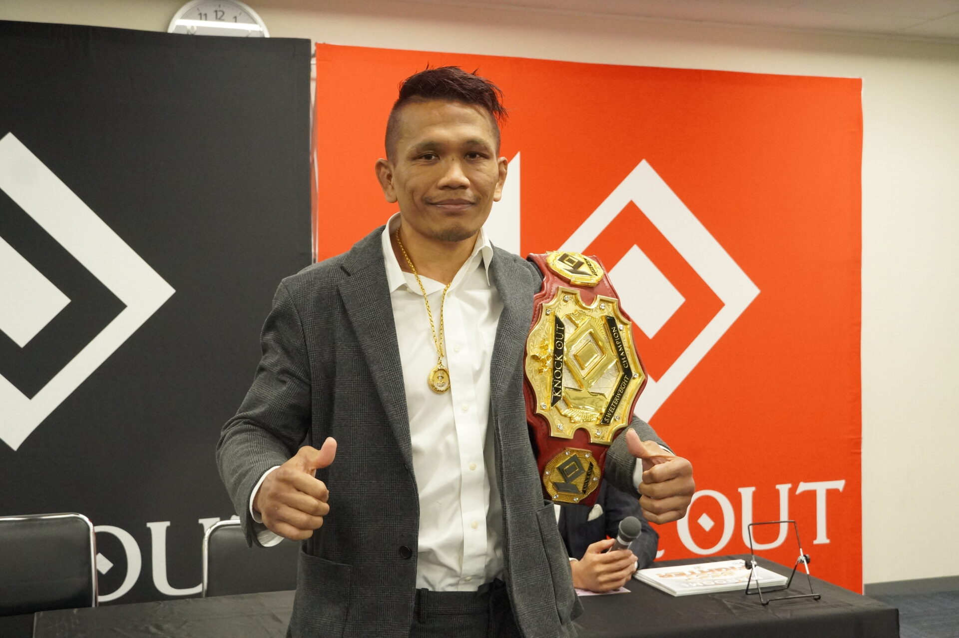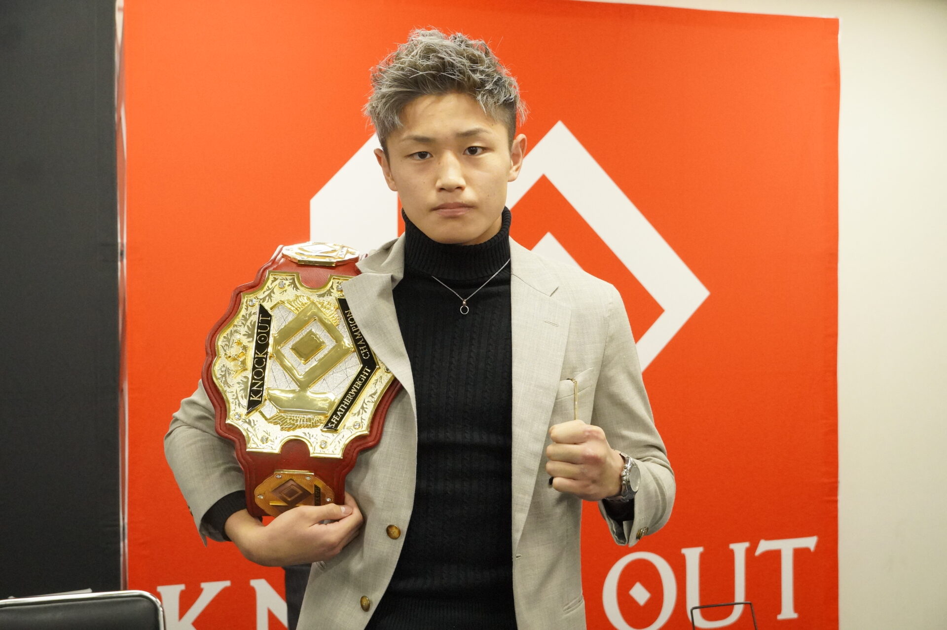 (ファンにメッセージ)こんな戦績トントンなチャンピオンですが、スーパーフライ級を引っ張っていく自覚ははっきり言って、誰にも負けない。どんな挑戦者が来ても絶対退けます。そして『KNOCK OUT』を更に盛り上げて、『KNOCK OUT STYLE』も盛り上げて、視聴率100%取っちゃうので期待してください」