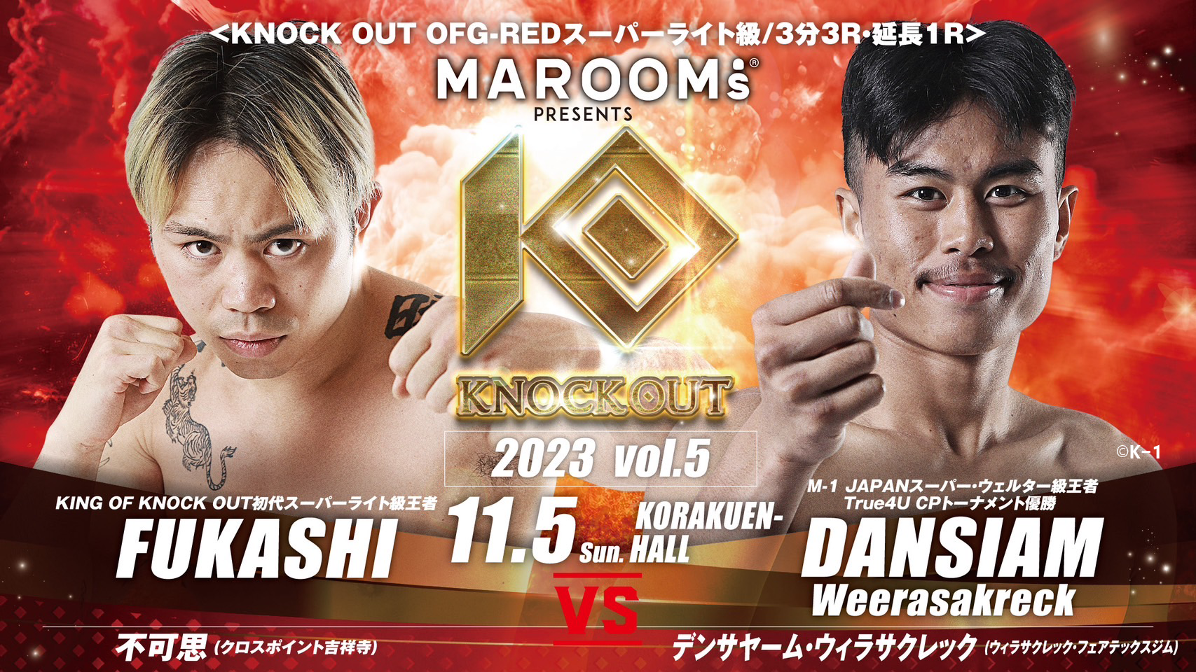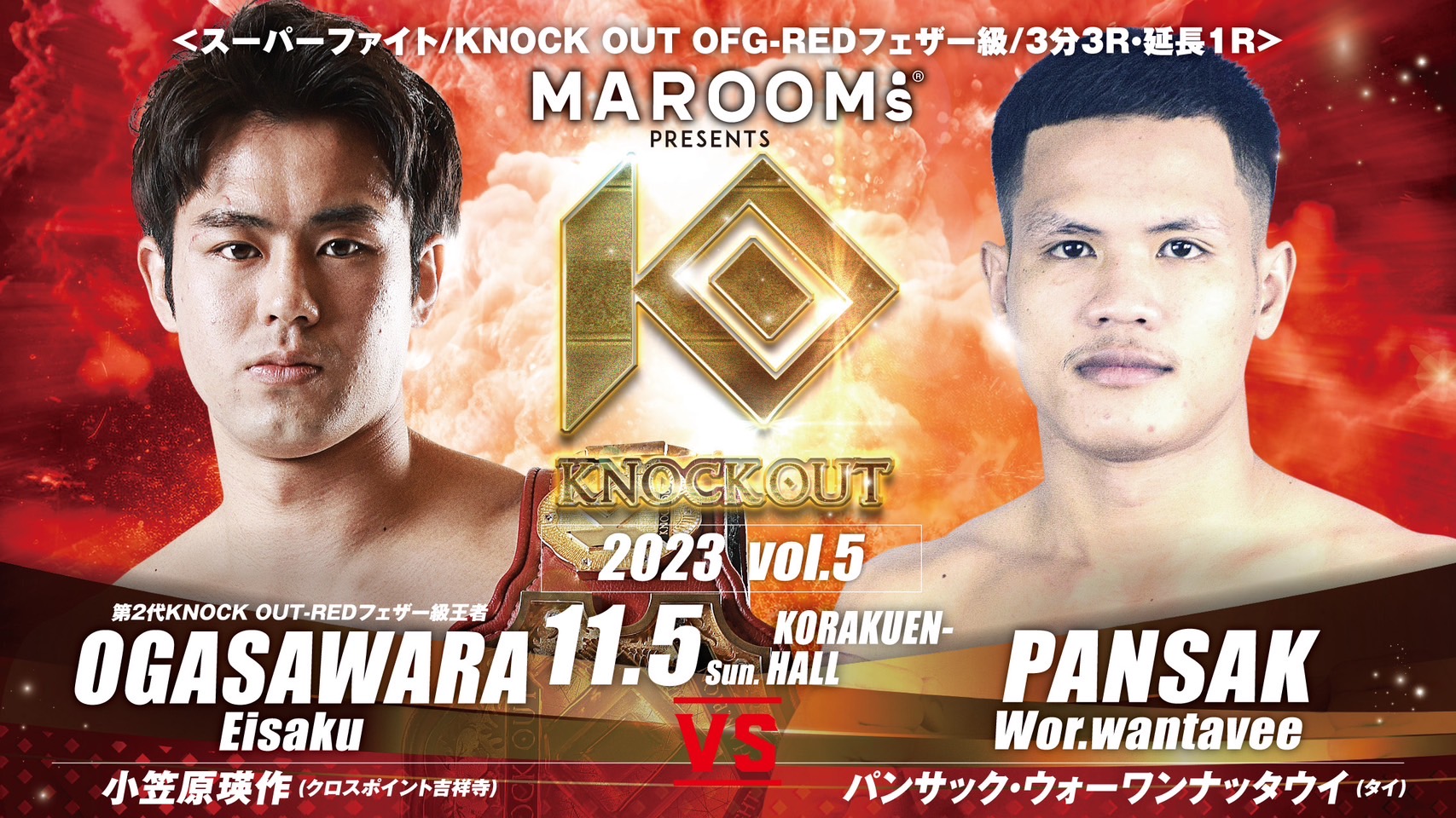 2023年11月5日(日)後楽園ホールにおいて開催するMAROOMS presents『KNOCK OUT 2023 vol.5』の追加対戦カードを発表いたします。