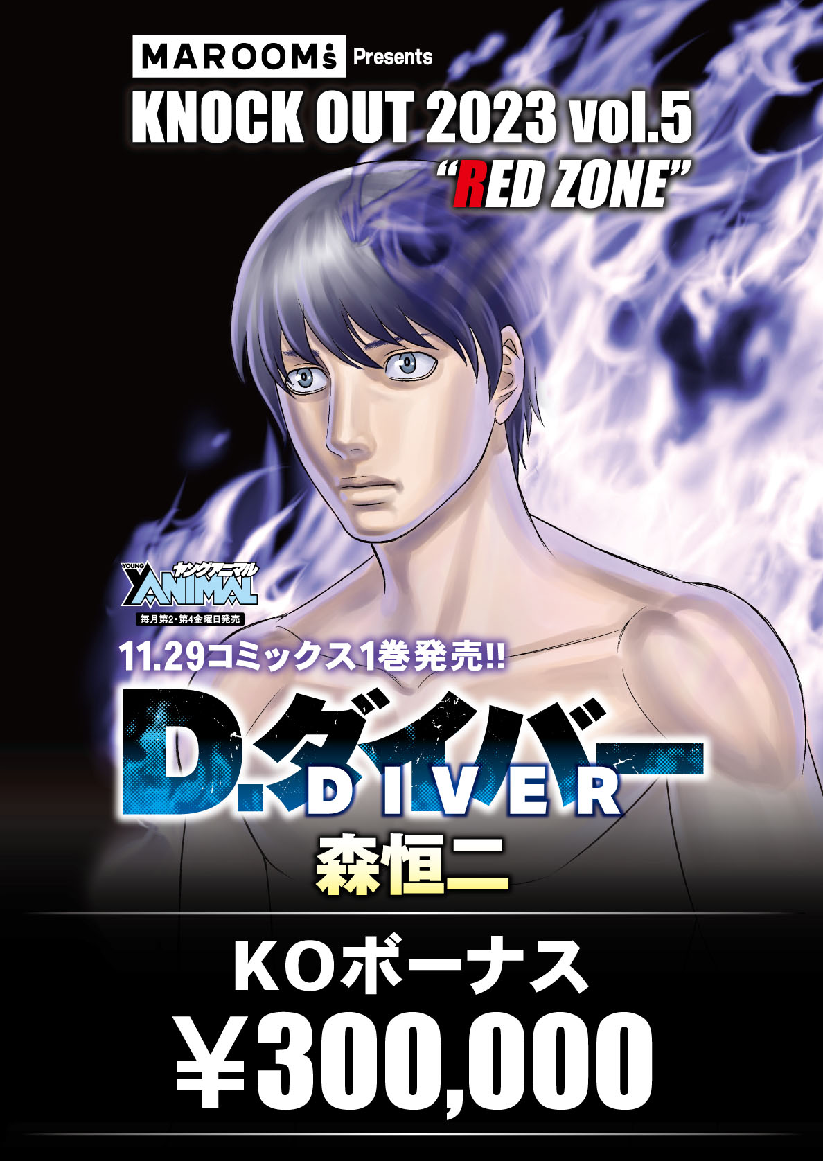 2023年11月5日(日)後楽園ホールで行われるMAROOMS presents『KNOCK OUT 2023 vol.5』では、本戦全試合対象の「KOボーナス」が贈られます。(メイン100万円・それ以外の試合は30万円)