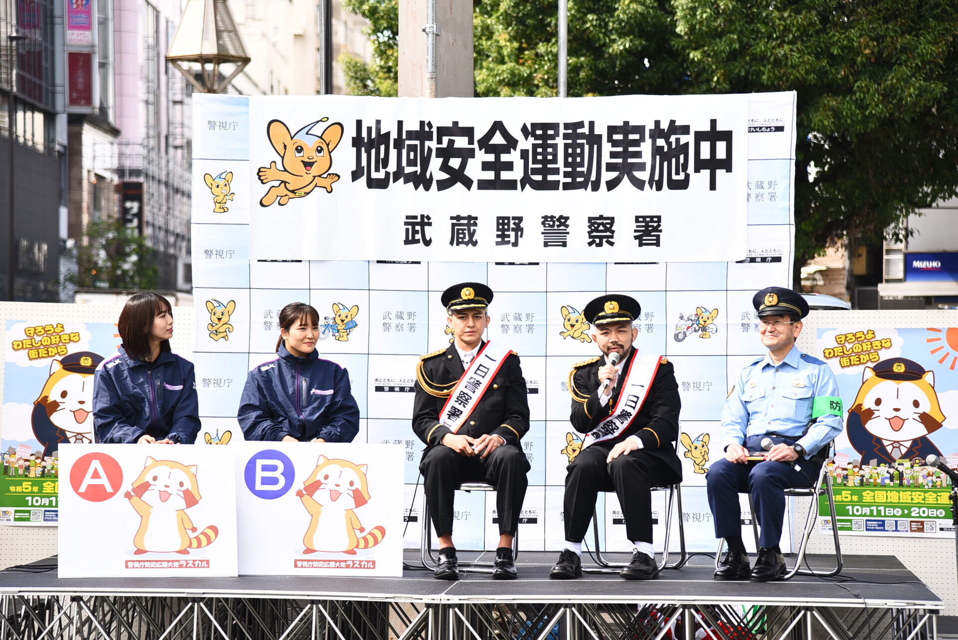 このイベントは特殊詐欺被害防止月間に伴う、武蔵野警察署、武蔵野市、武蔵野防犯協会等による広報啓発活動イベントで定期的に実施しており、今年4月にも2選手は参加している。