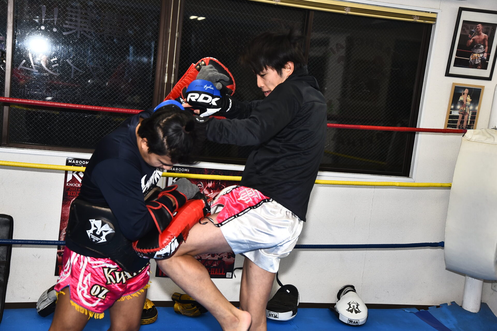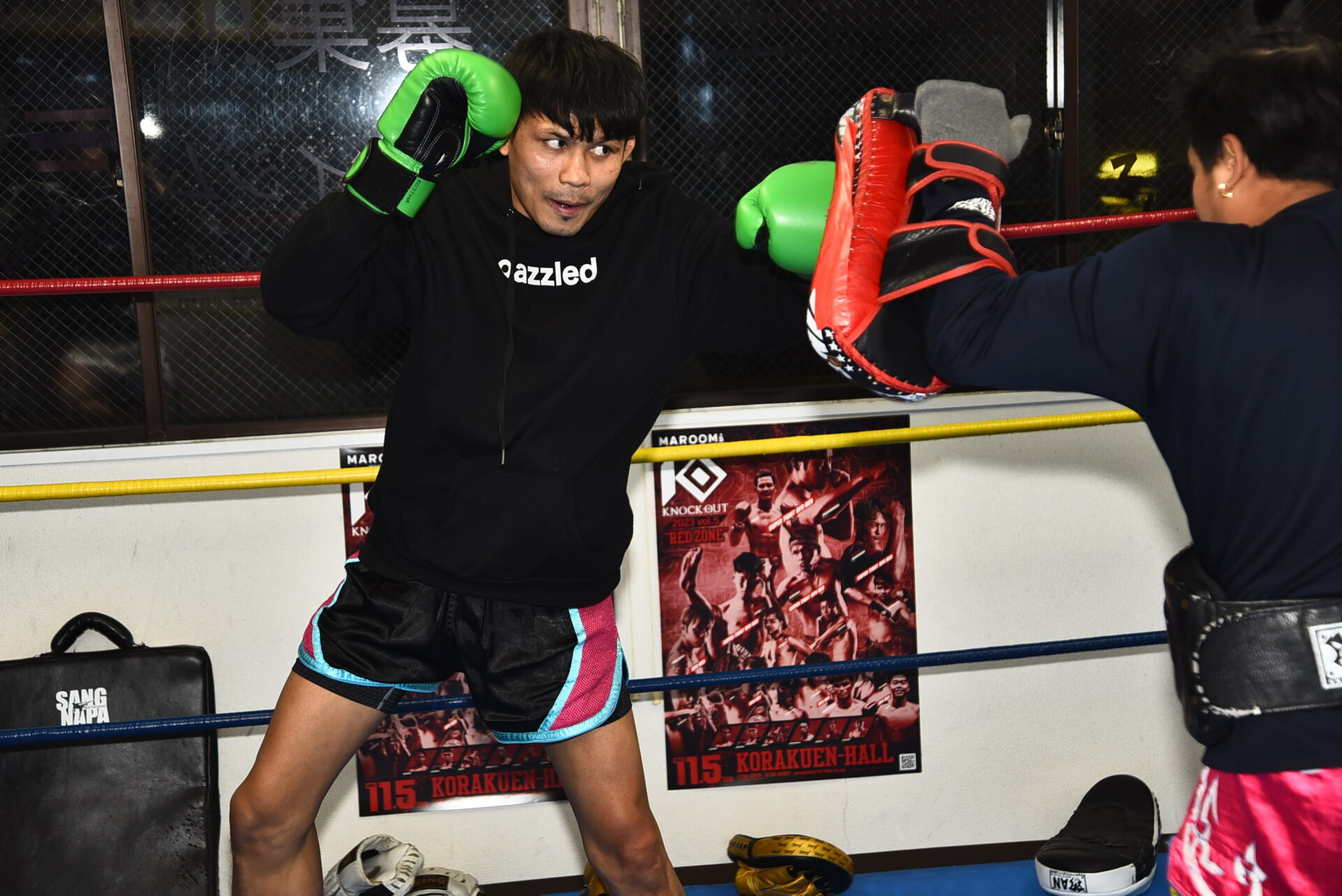 また、OFGについては「僕がプロデビューして5、6戦目くらいの時にタイで一度、OFG着用のMAX MUAYTHAIの試合のオファーがあってその試合は流れたのですが、その時からOFGに興味がありました。センチャイ会長は視野が広く、『OFGだとこのパンチが当たる。このパンチは良くない』とかグローブとOFGの違いを凄く理解し、OFGでの戦い方を勉強しています。会長が言われたことを今、当てはめて練習しているので、そういうことも含めて楽しみですね」と試合が待ち遠しい様子も見せた。