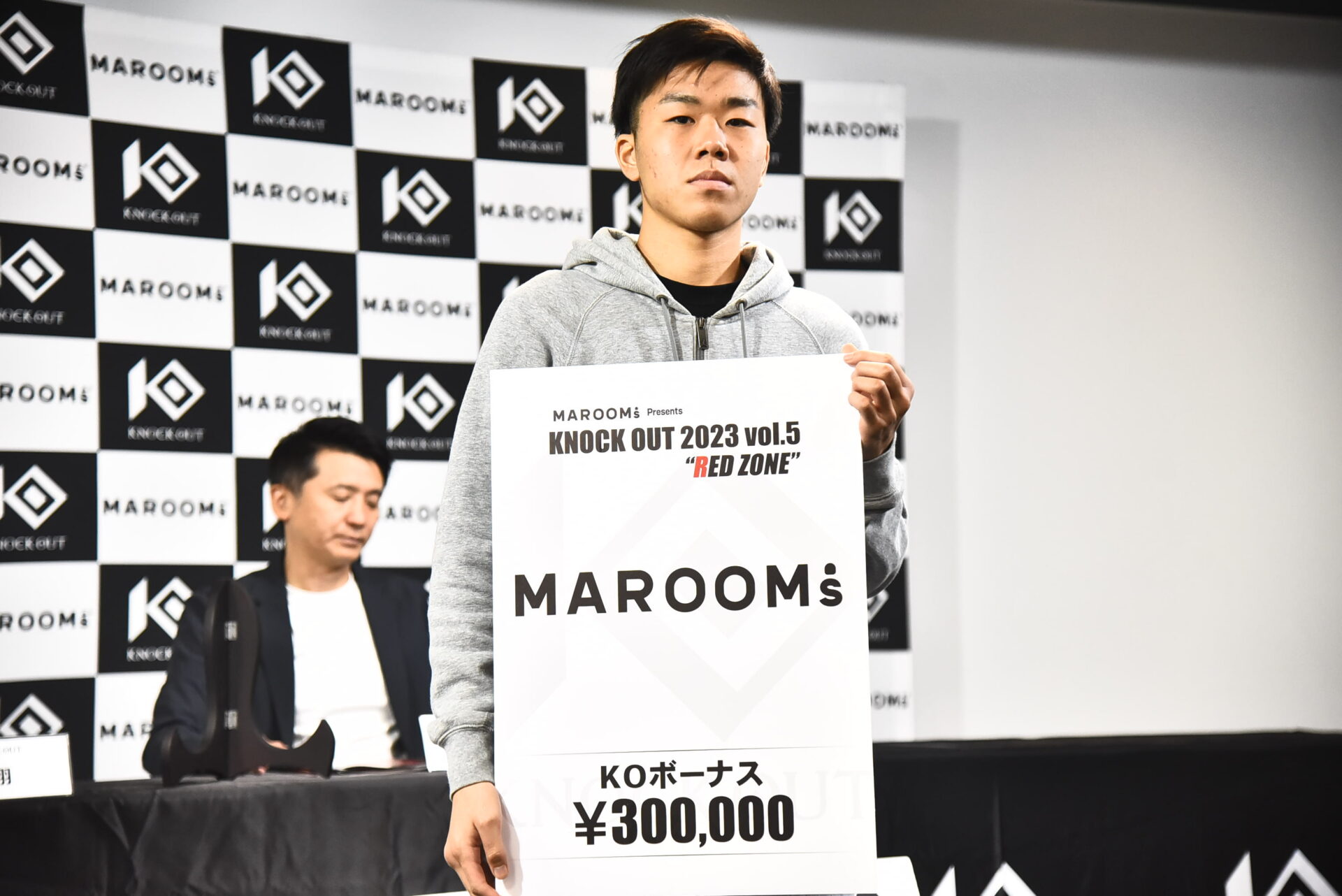 MAROOMS BEST FIGHTER賞を受賞し、「あの面子の中でMVPに選ばれたのは凄く光栄ですし、自分の進化にもつながっていくと思うので、自分はいずれチャンピオンの重森選手に勝って『KNOCK OUT』を代表する選手になりたいと思っているので、そこに向けてはいいスタートが切れたと思います」と重森が保持するタイトル挑戦に意欲を見せる。