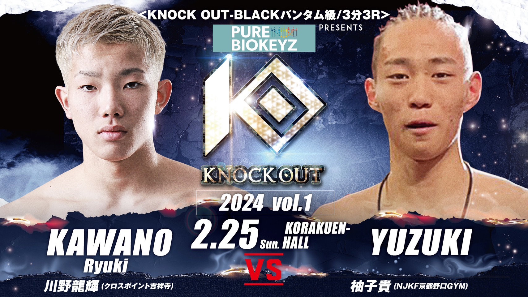 ▼KNOCK OUT-BLACKバンタム級 3分3R・延長1R 川野龍輝(クロスポイント吉祥寺) vs 柚子貴(NJKF京都野口GYM)